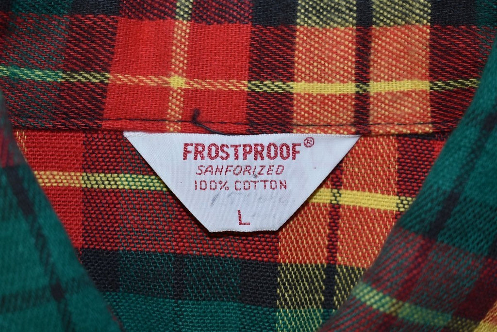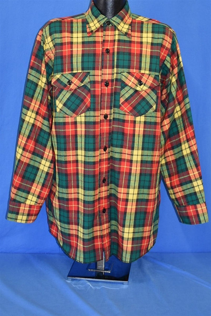 60s Frostproof Green Red Yellow Plaid Shirt Large