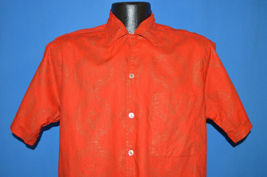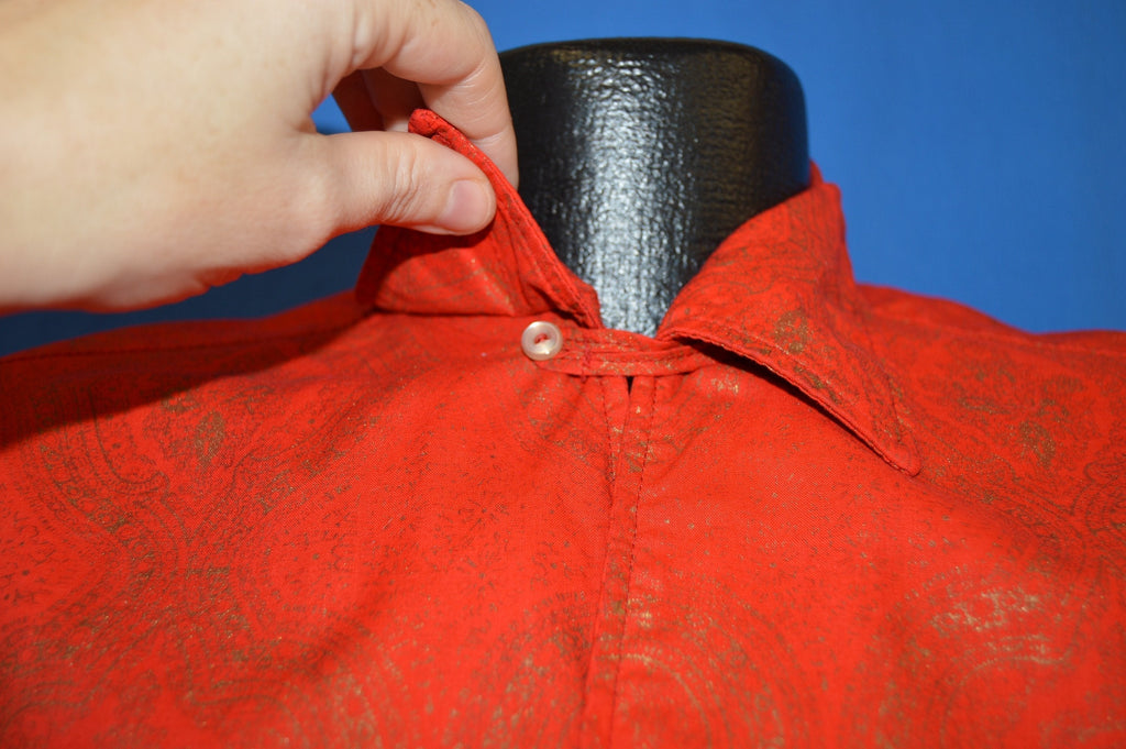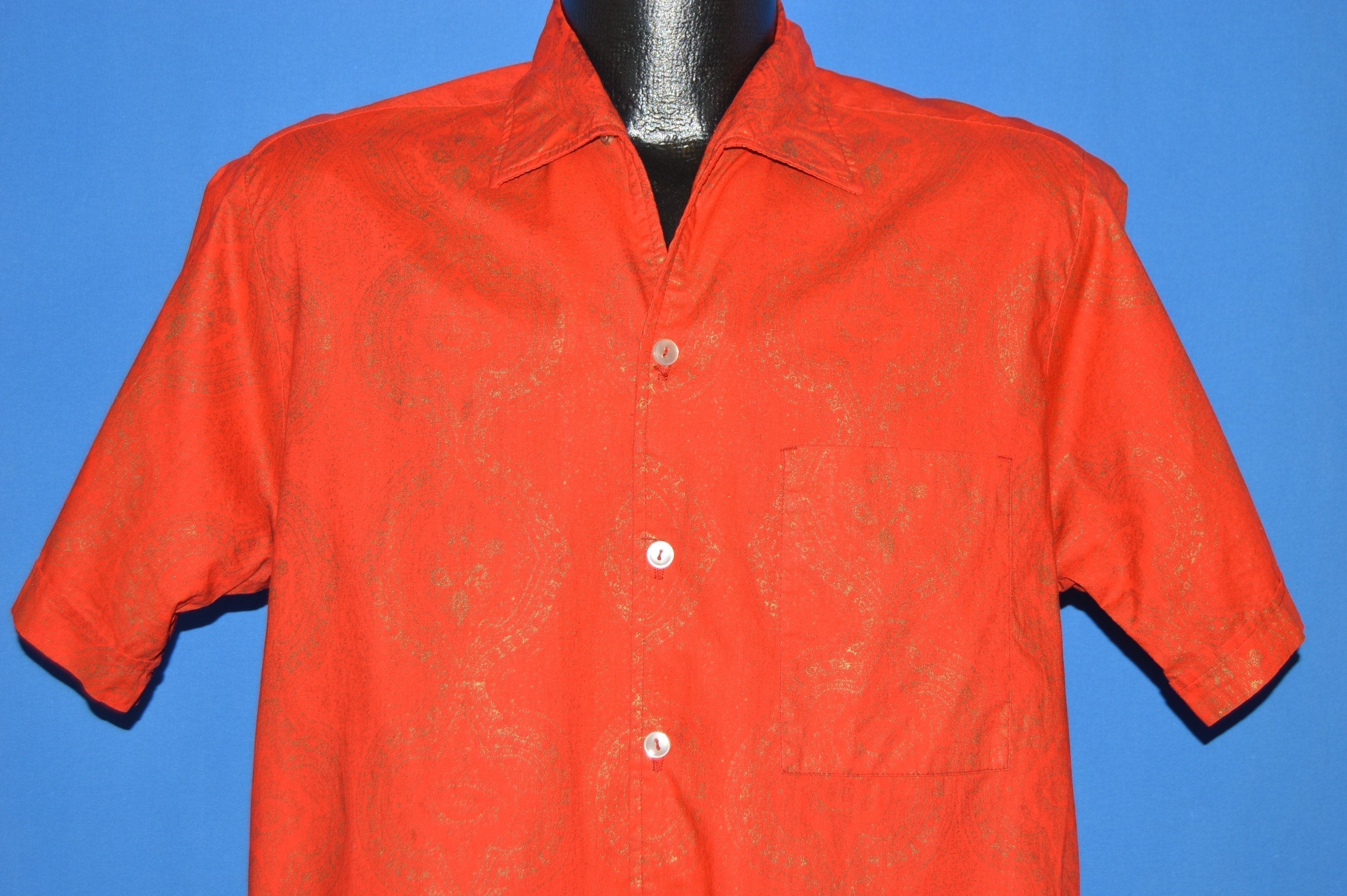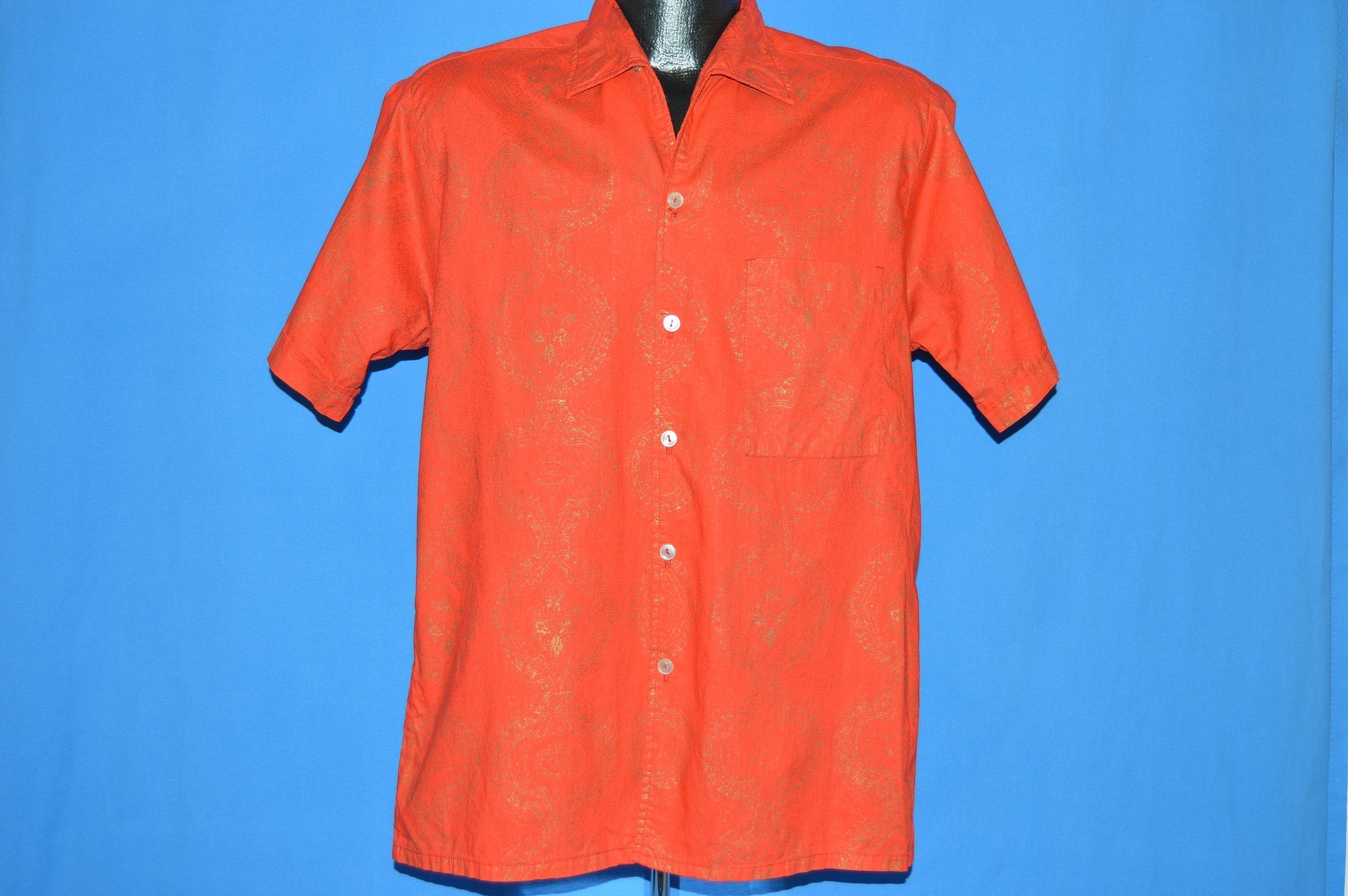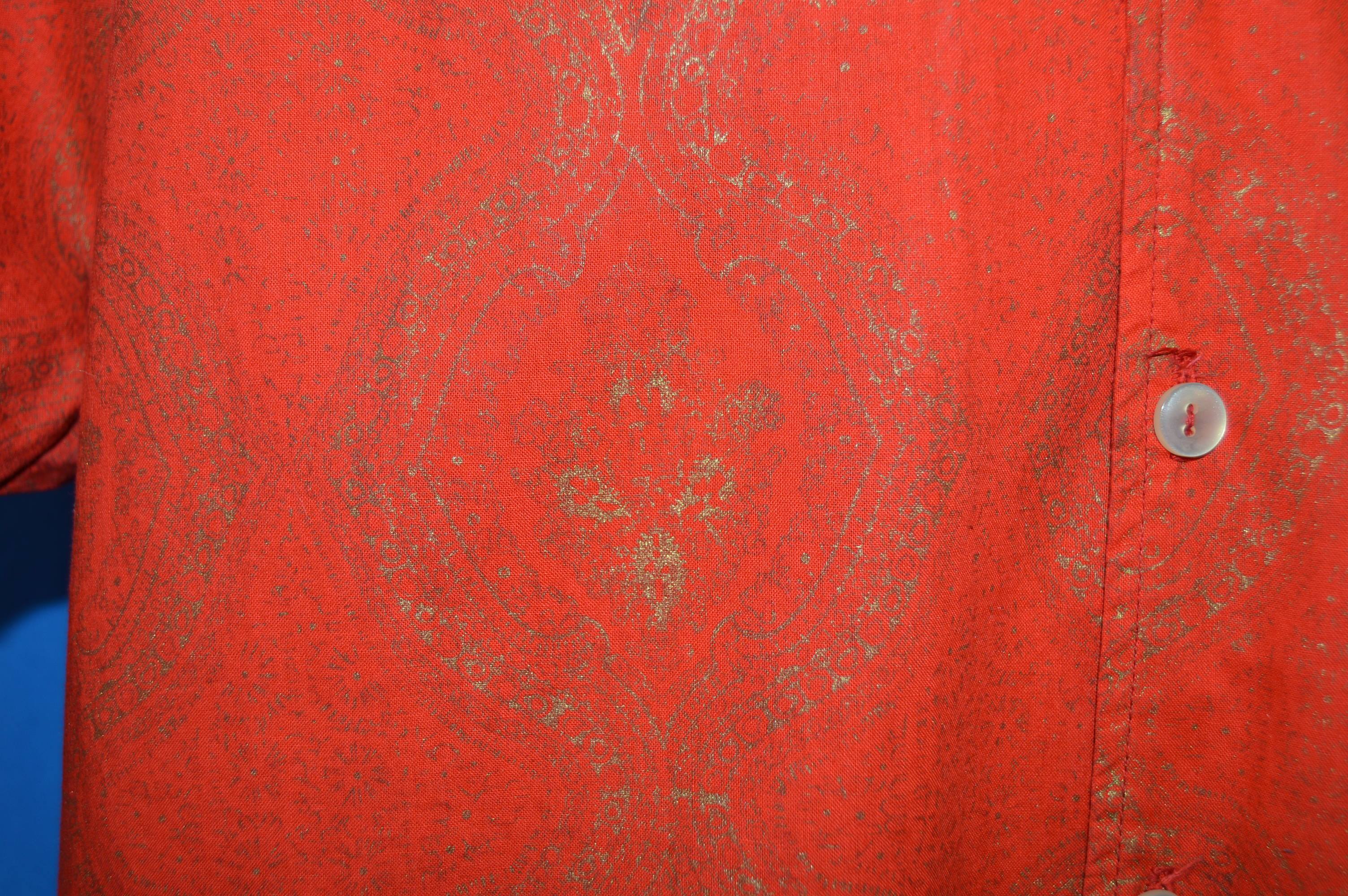 This red short sleeve shirt is from the 60s and is in excellent condition. The shirt has a big collar and a gold inlay design through out.
