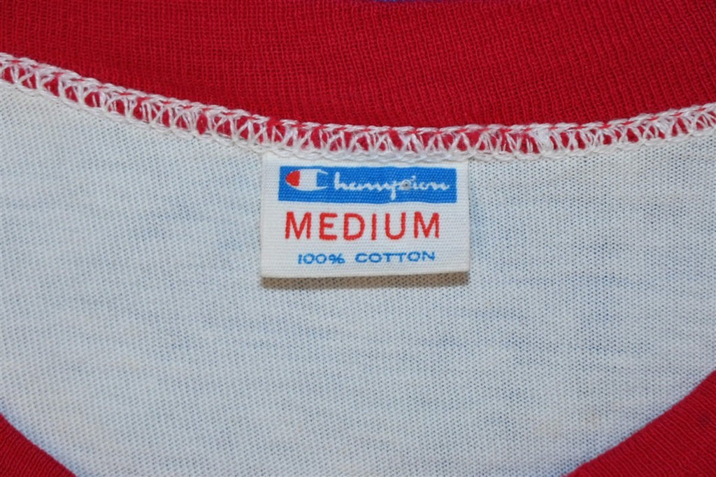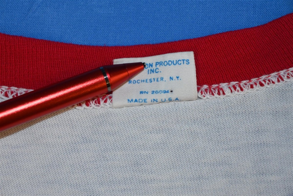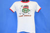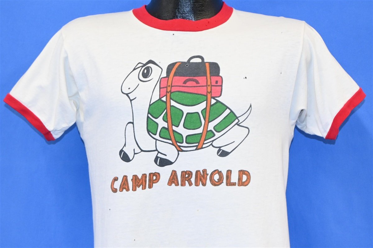 This vintage ringer was made in the 70s, and it features the iconic Champion Blue Bar tag. The ringer features a charming cartoon graphic of a turtle in honor of Camp Arnold. Camp Arnold is found in the Timberlake area of the state of Washington, and the grounds offer beautiful views of Mount Rainier.