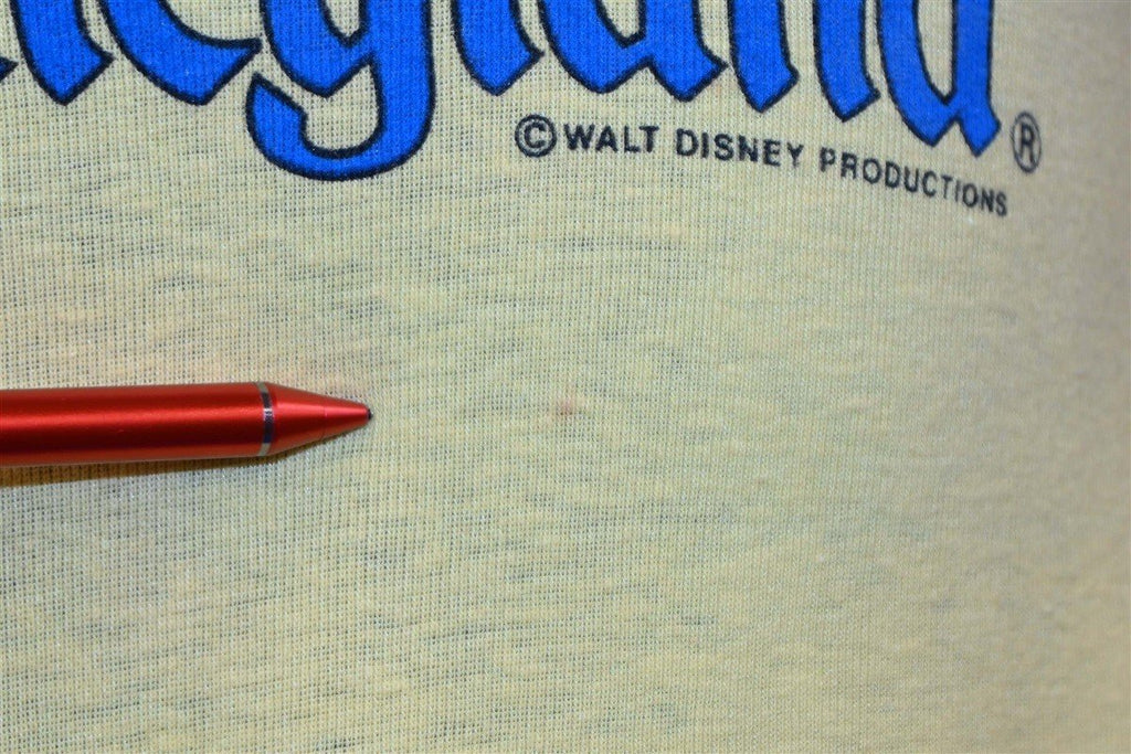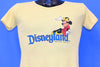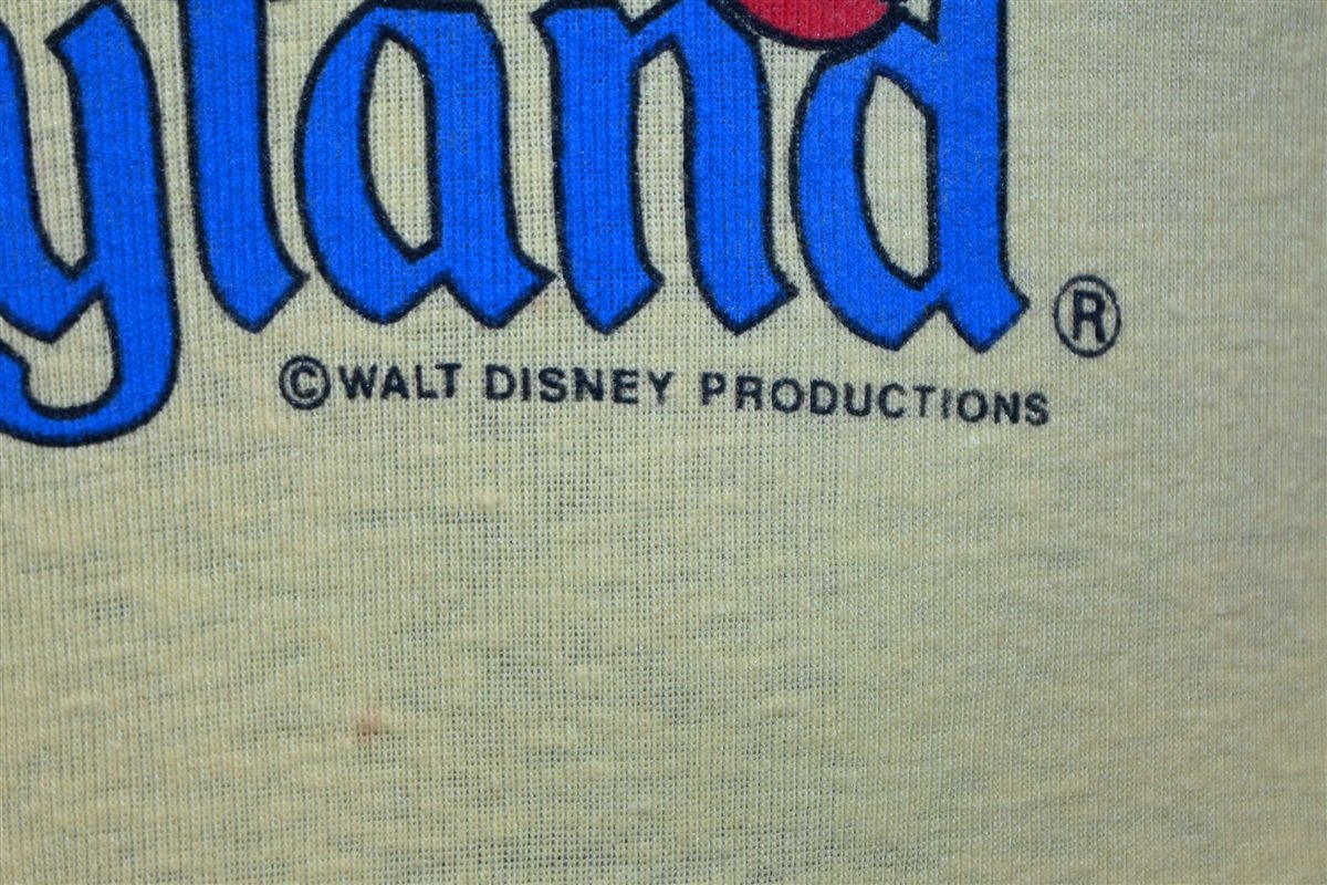 This awesome tee is a souvenir from Disneyland in the 70s. The shirt features a graphic of Mickey's beloved girlfriend, Minnie Mouse and it's made from a soft and stretchy rib knit material. Disneyland first opened back in 1955 in Anaheim, California, and its construction was overseen by Walt Disney himself. During the 70s, the park introduced new attractions like the beloved Main Street Electrical Parade and the roller coaster Big Thunder Mountain Railroad. Disney also opened a second park, the Disney World Resort Complex in Florida during the 70s, although it took some time for the new park to catch up to Disneyland's immense popularity.