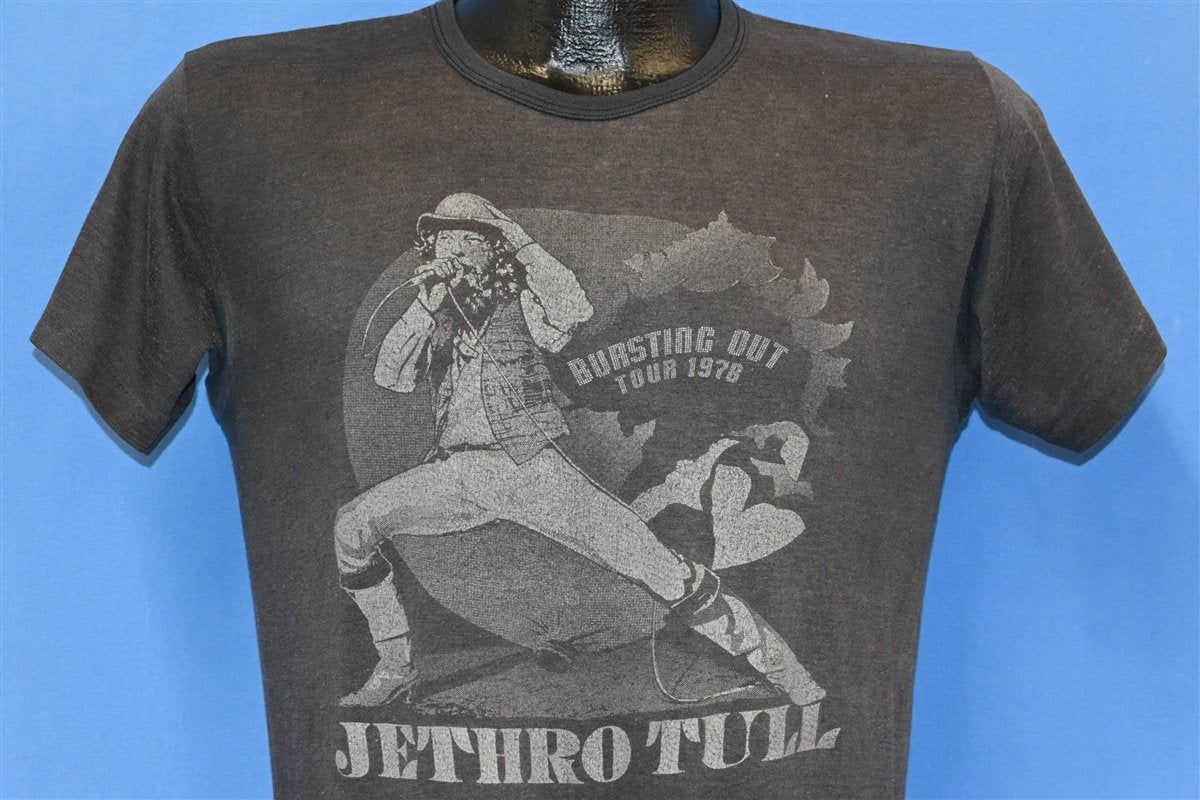This sweet vintage tee was made back in 1978 for the band Jethro Tull. This shirt mentions Bursting Out, which was the title of a 1978 live double album that was recorded during the band's Heavy Horses Tour in Europe. Heavy Horses was the group's eleventh studio album and it managed to break the top 20 of both the US and UK Album charts.
