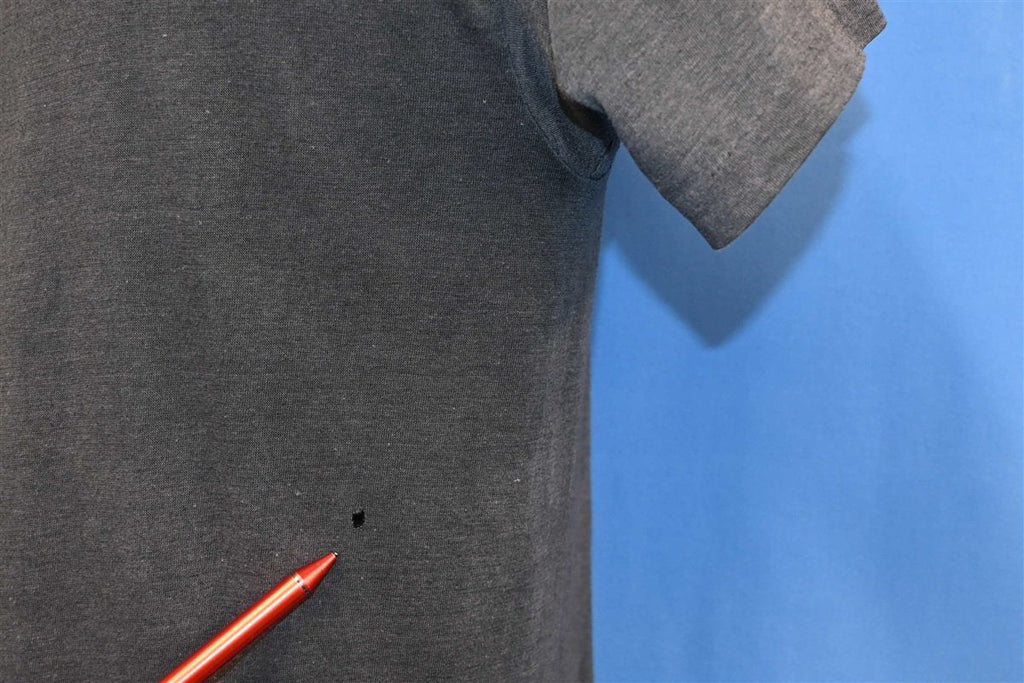 The tag says large but this shirt fits like a modern unisex adult medium. This shirt is soft and there is a hole on the back, see pics.