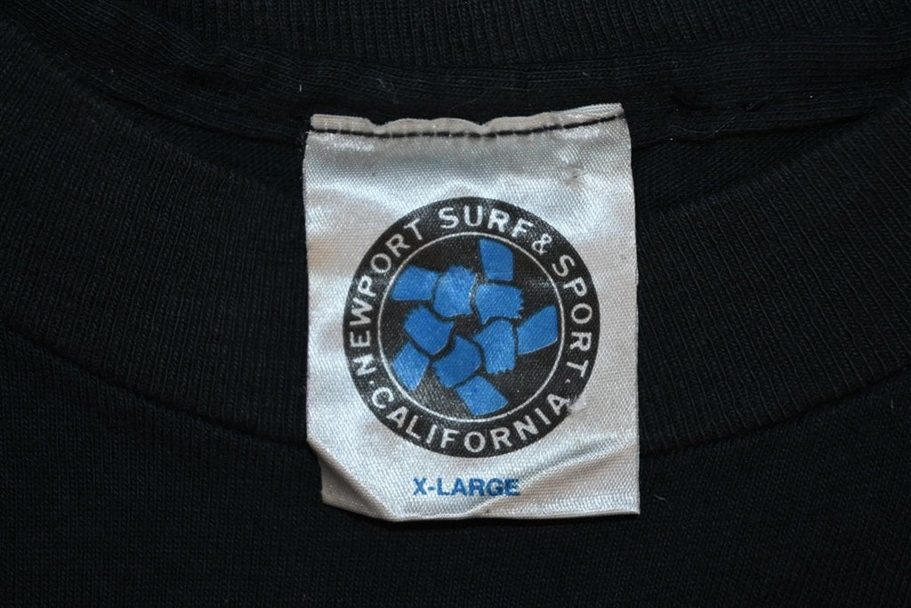 The Bones Brigade proved that skaters could make a viable professional career out of the sport in the 80s, and the team consisted of some of the most famous names in skating, including Steve Caballero, Rodney Mullen, Mike McGill, Tommy Guerrero, Alan Gelfand, Lance Mountain, and Tony Hawk. This shirt from Newport Surf & Skate is an awesome piece of 1980s skate culture, which was likely designed to pay tribute to the popularity of the Bones Brigade and their influence over the sport.