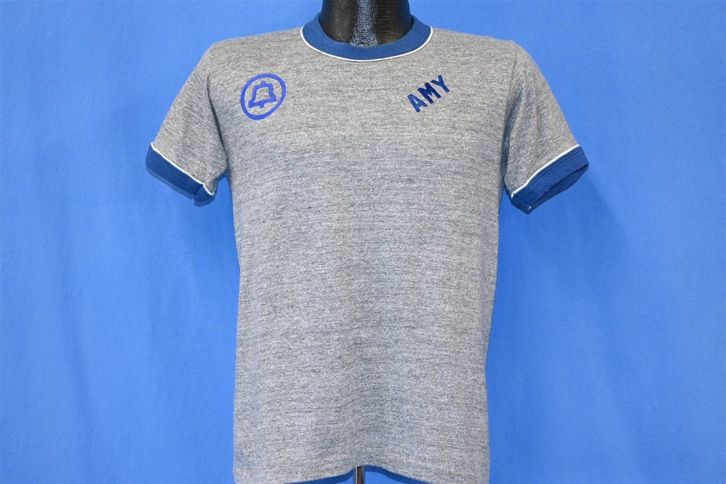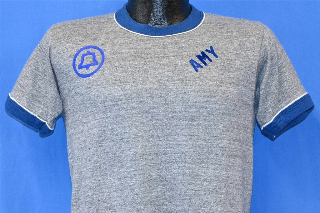 This vintage tee was custom made for someone name Amy circa 1980s. It's held up great over time, preserving that old school charm for years to come. Features a cooling tri blend, awesome fuzzy letters, and a classic ringer style. Amy might have been advocate of the Bell Telephone Company and Polaris Missiles.