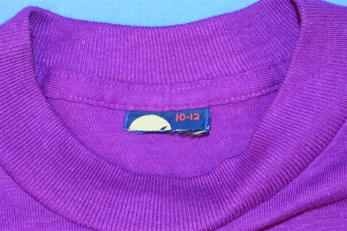 Fits like a modern unisex youth medium. This shirt is deadstock, unworn. There is a spot on the front, see pics