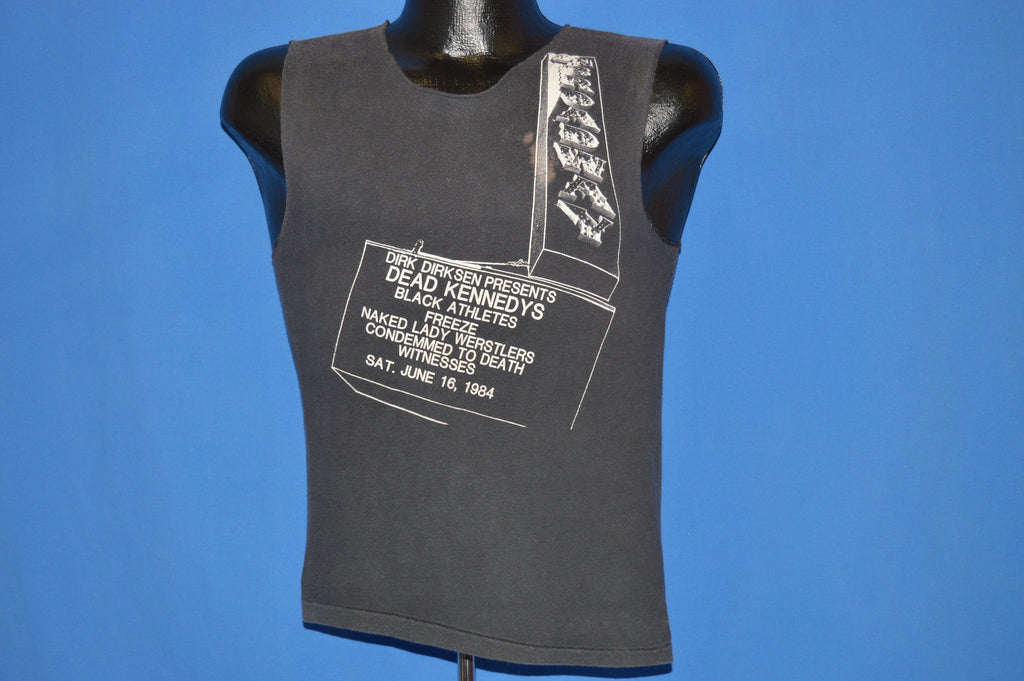 The show featured on this shirt, the closing of On Broadway, featured Dead Kennedys, Black Athletes, Freeze, Naked Lady Wrestlers (spelled Werslters), Condemned to Death, and Witnesses. The show was filmed, and later released as a concert video called DMPO's on Broadway.