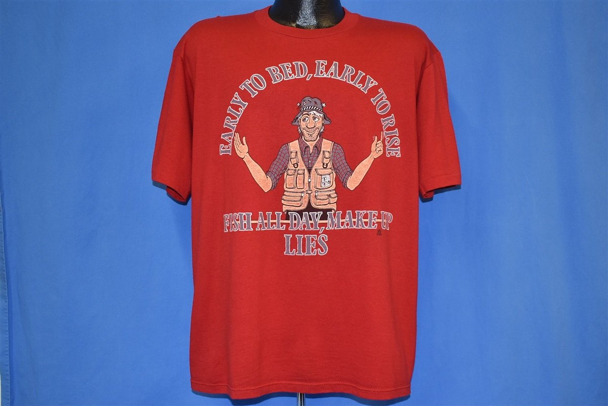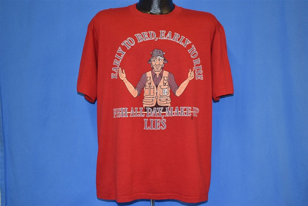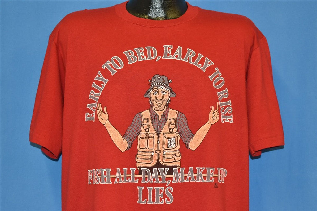 This vintage tee is the epitome of eighties style featuring cartoon graphics, soft poly cotton, and a good old fashioned corny joke. It's a the perfect gift for dads, grandpas, or husbands who love to fish and tell tall tales.