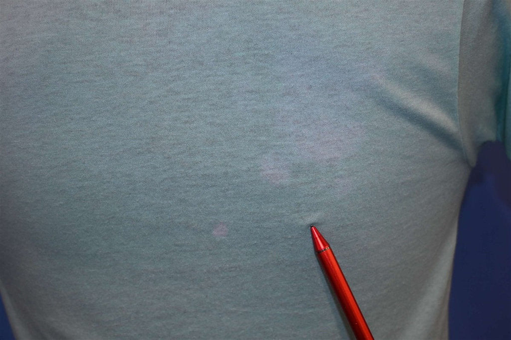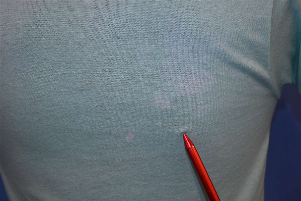Fits like a modern unisex adult small. There are some light bleach spots throughout, see pics.