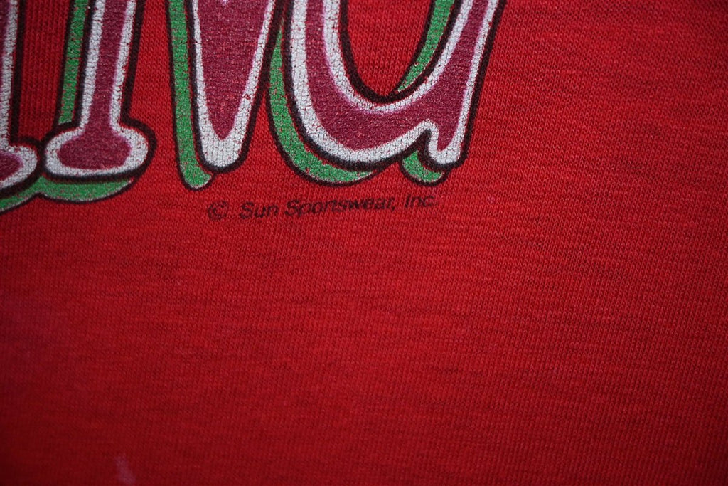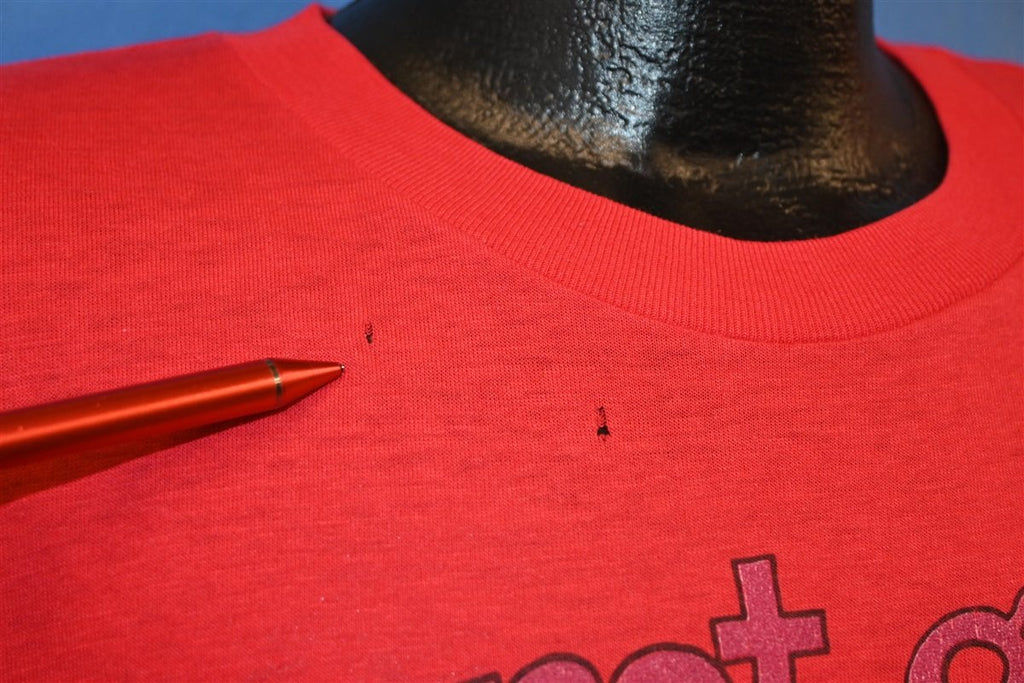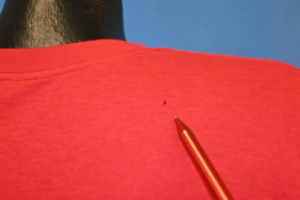Fits like a modern unisex adult XXL or 2XL. This shirt is soft, thin, and distressed with small holes, see pics.