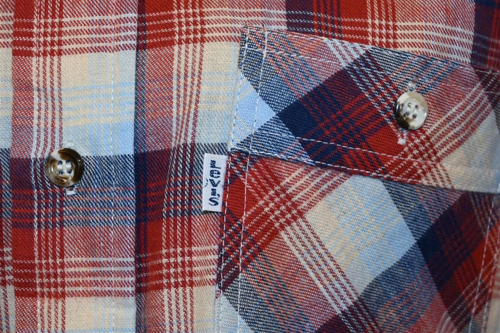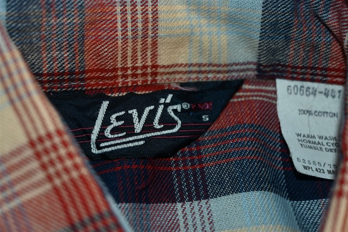 80s Levis Plaid Red Blue Flannel Shirt Small