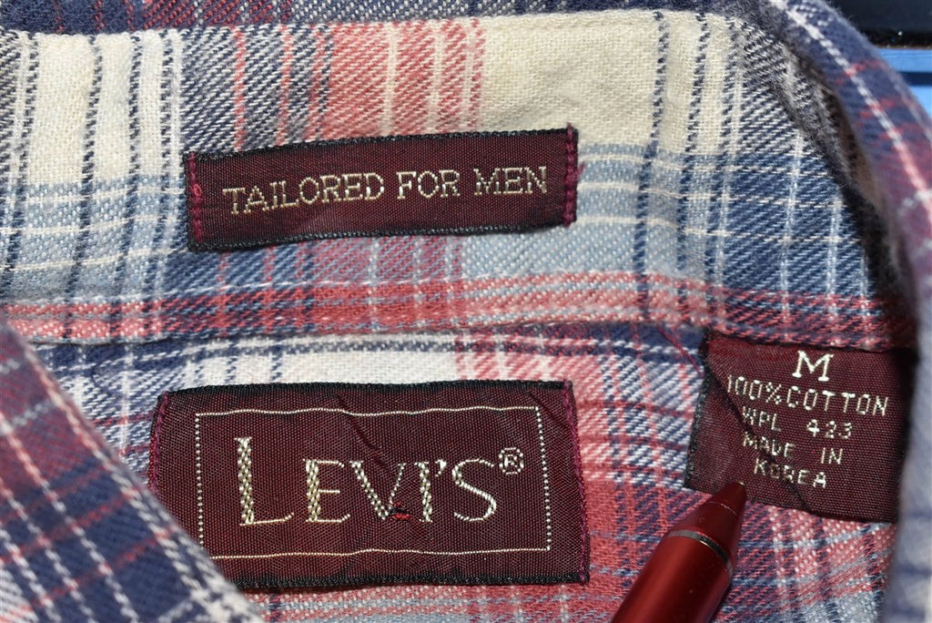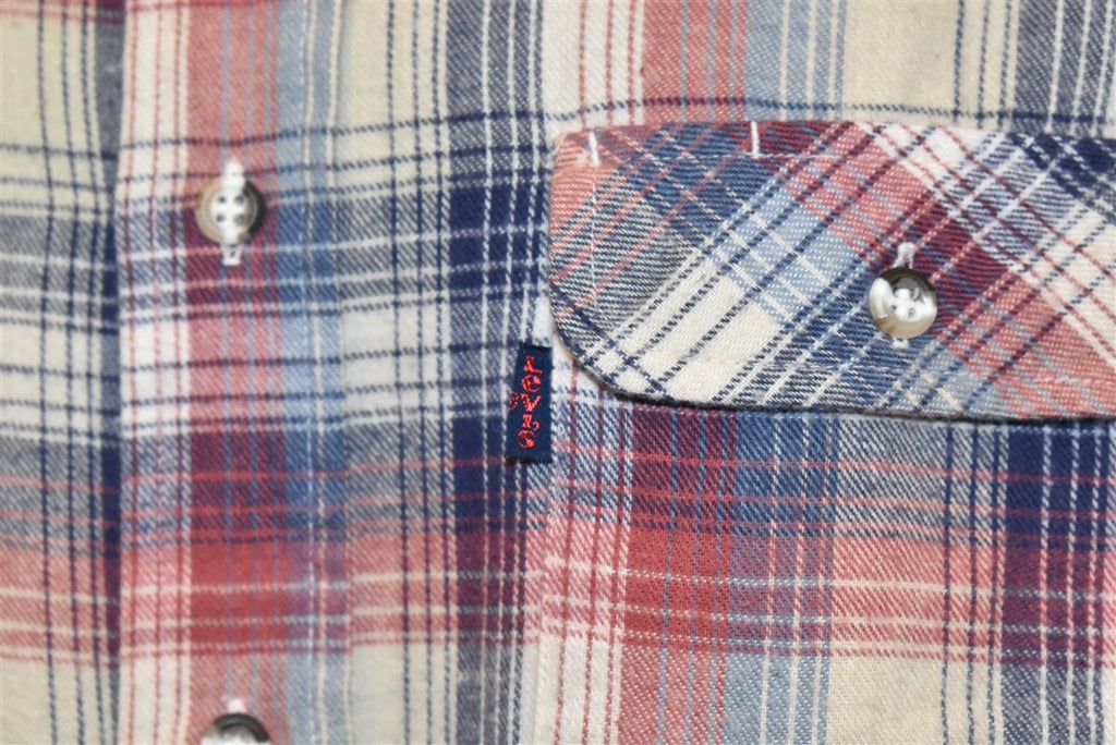 80s Levis Plaid Red White Blue Flannel Shirt Medium