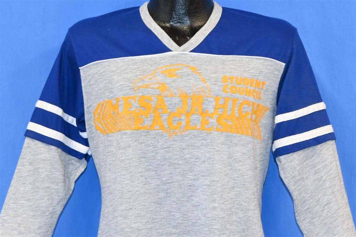 This shirt reps the Mesa Jr. High Eagles, student council. Mesa Junior High closed its doors as a school in 2012. The location where the school used to be now benefits the community as a public park. The park pays homage to the late public school by naming itself after the school's mascot, Eagle Park.