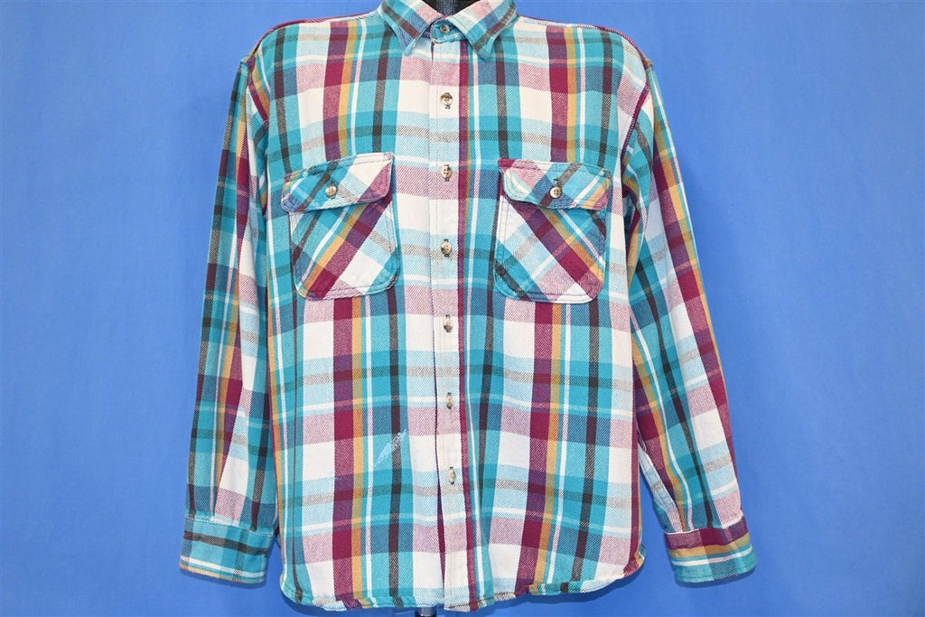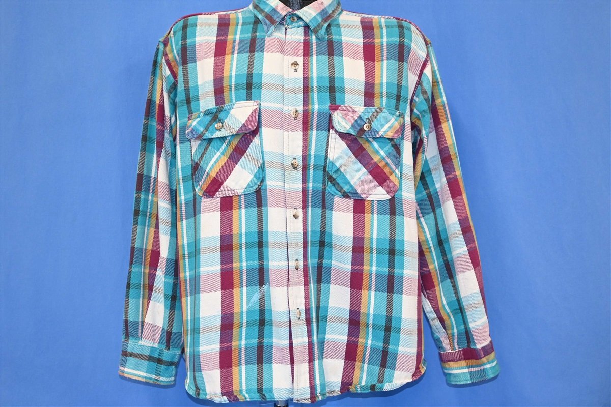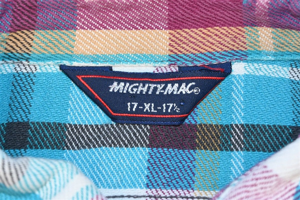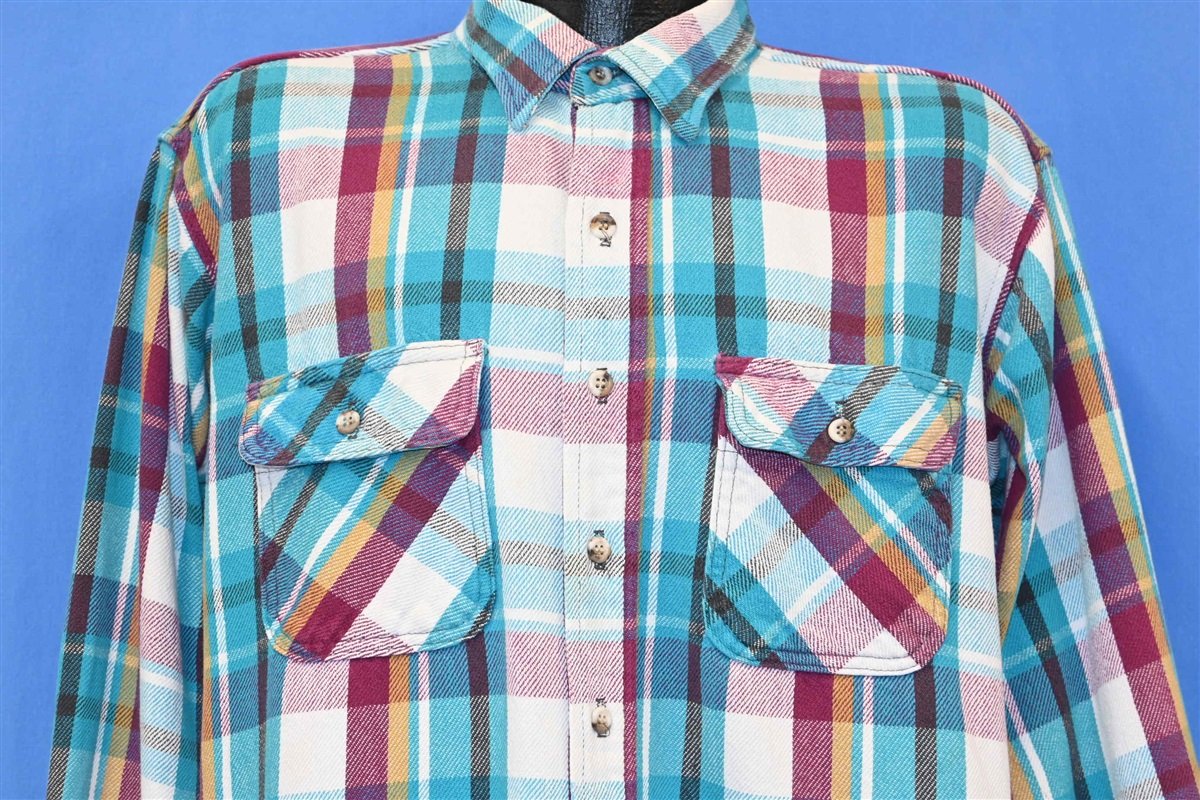 80s Mighty Mac Teal Plaid Flannel Button Down Shirt Extra Large