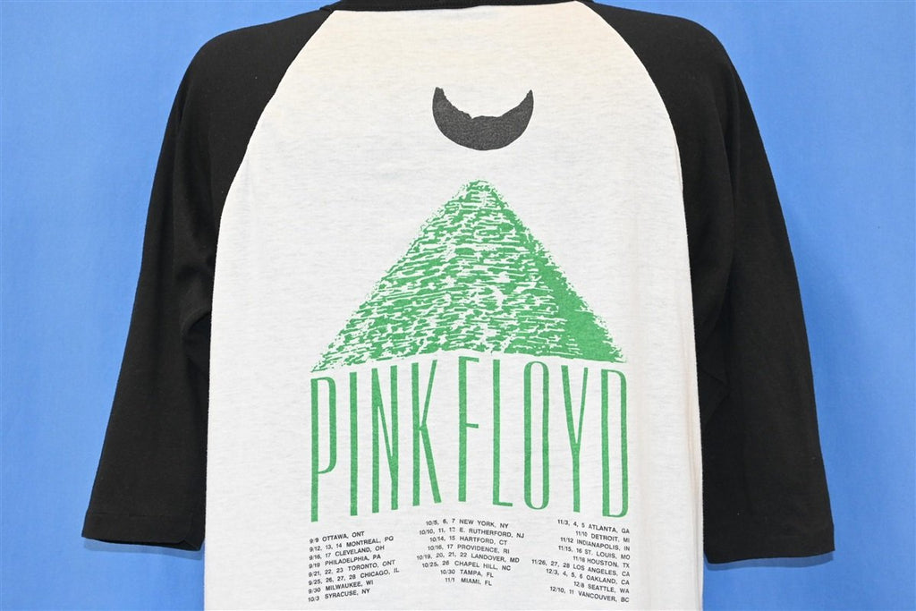 This awesome raglan concert tee is from the Momentary Lapse of Reason Tour from Pink Floyd. In 1987 and 1988 the band held two consecutive world tours in support of their thirteenth studio album, A Momentary Lapse of Reason. This was the band's first album recorded without their founding bassist and primary lyricist, Roger Waters, and it was released amidst some lengthy legal battles concerning the rights to the Pink Floyd name.