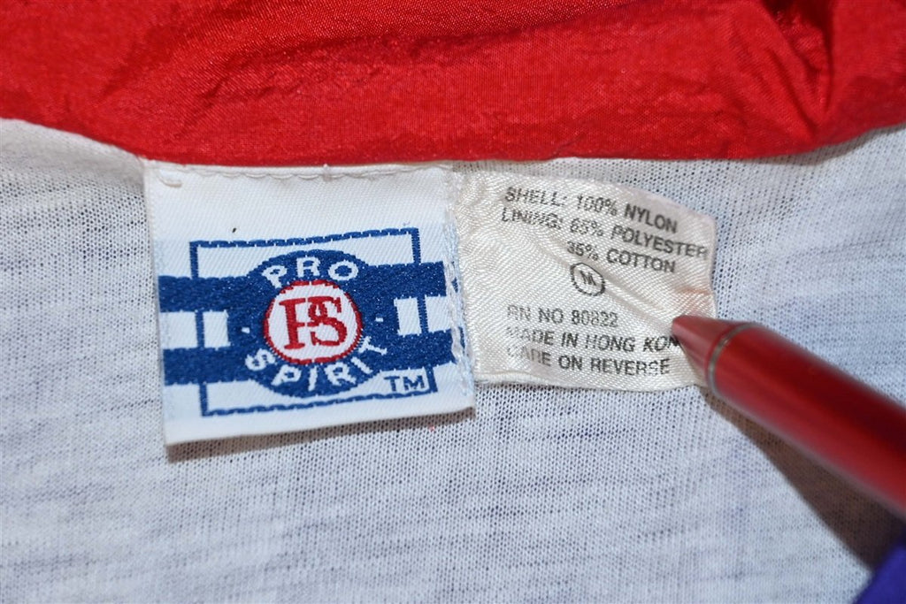 This awesome windbreaker was made by Pro Spirit back in the 80s. This jacket has a sleek nylon shell and a cozy cotton blended lining, to keep you nice and warm, and to help block out any wind or rain. This jacket also zips all the way up to the chin and has a drawstring collar, which can be pulled tight for extra protection against the elements. This jacket's vibrant colorblocked design also makes it as stylish as it is comfy.
