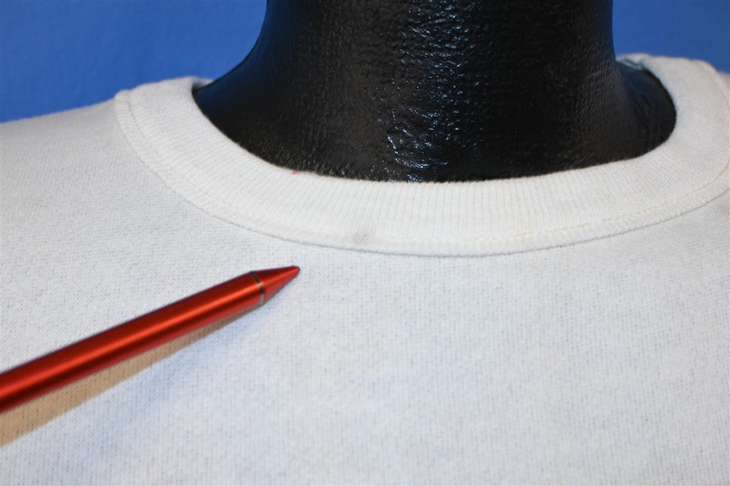 Fits like a modern unisex adult medium. There are light spots on the front and collar, see pics.