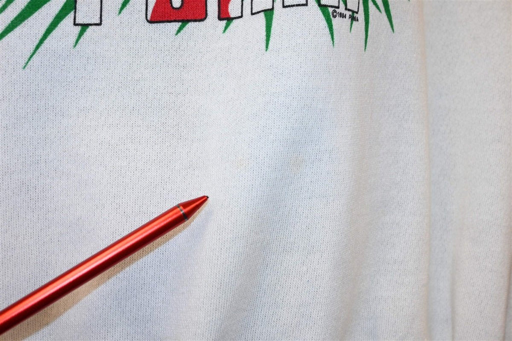 This sweet sleeveless sweatshirt was made by Puma, and it features an amazing and vibrant graphic of the animal that the company is named after. Puma is a German sportswear manufacturer that was founded by Rudolf Dassler, one of the co-founders of Dassler Brothers Shoe Factory, which was the predecessor to Adidas. While Adi Dassler went on to create the three stripes company, Rudolf created his own brand, Puma.