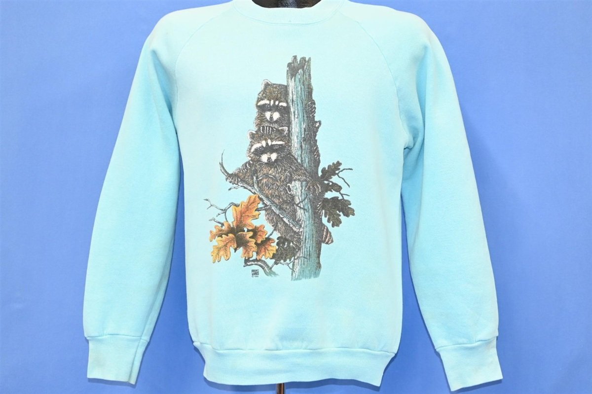 80s Raccoons Wildlife Animal Nature Raglan Sweatshirt Small