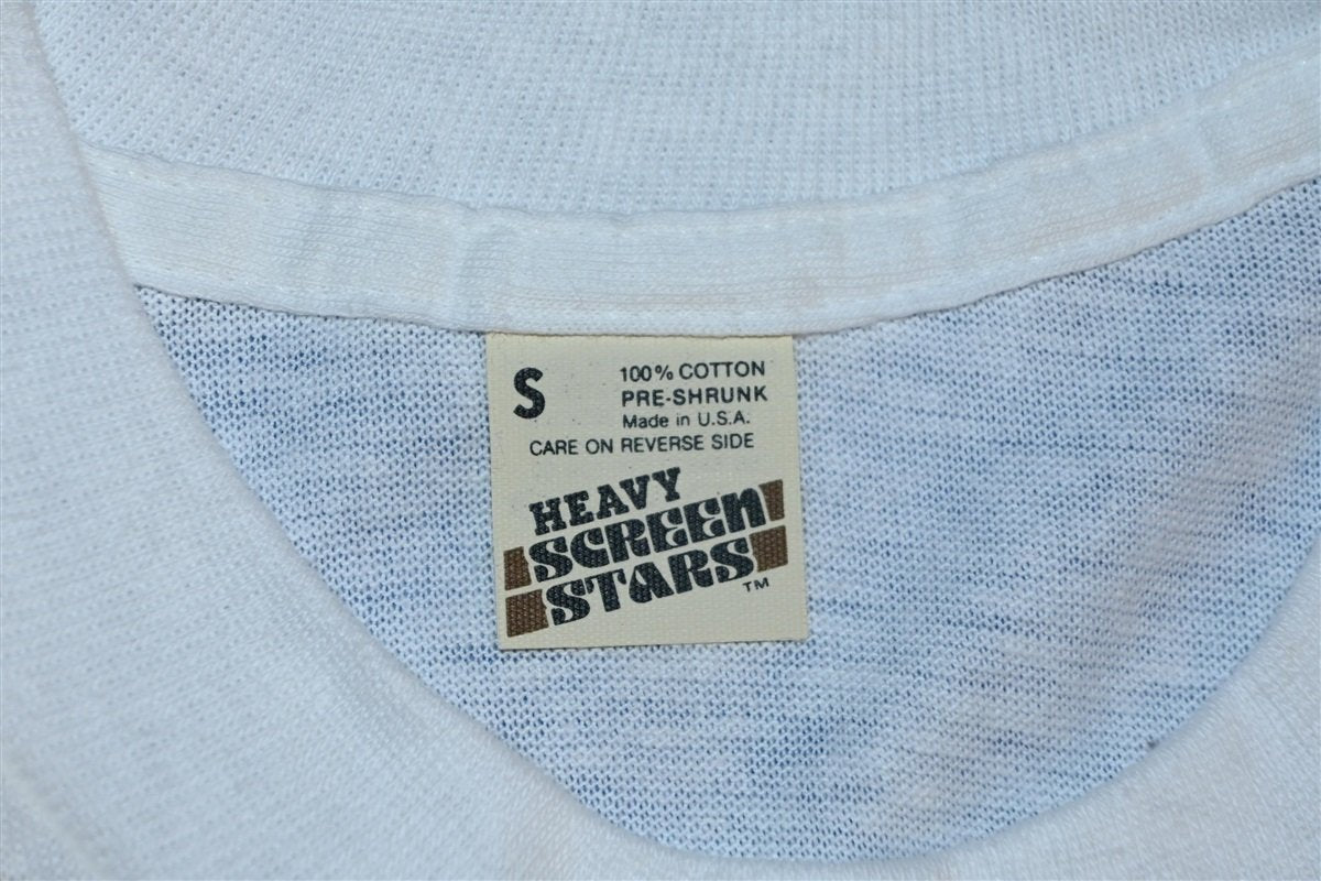 Fits like a modern unisex adult small. This shirt is deadstock, unworn. There are some small spots, quailty may vary.