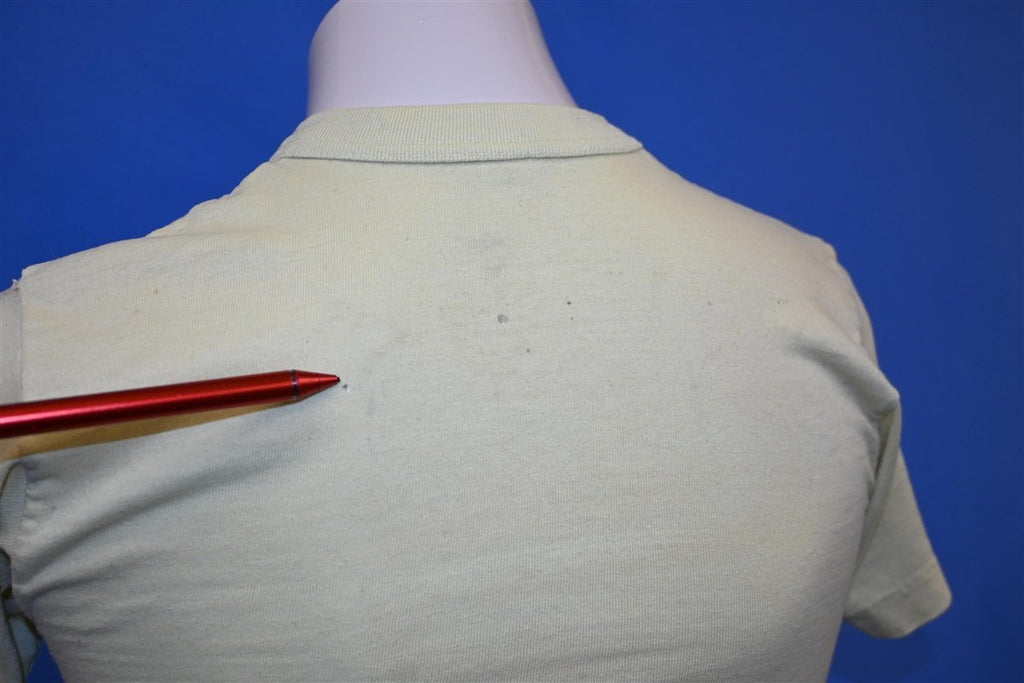 Fits like a modern adult women's extra small. There is some light discoloration near the collar, see pics.