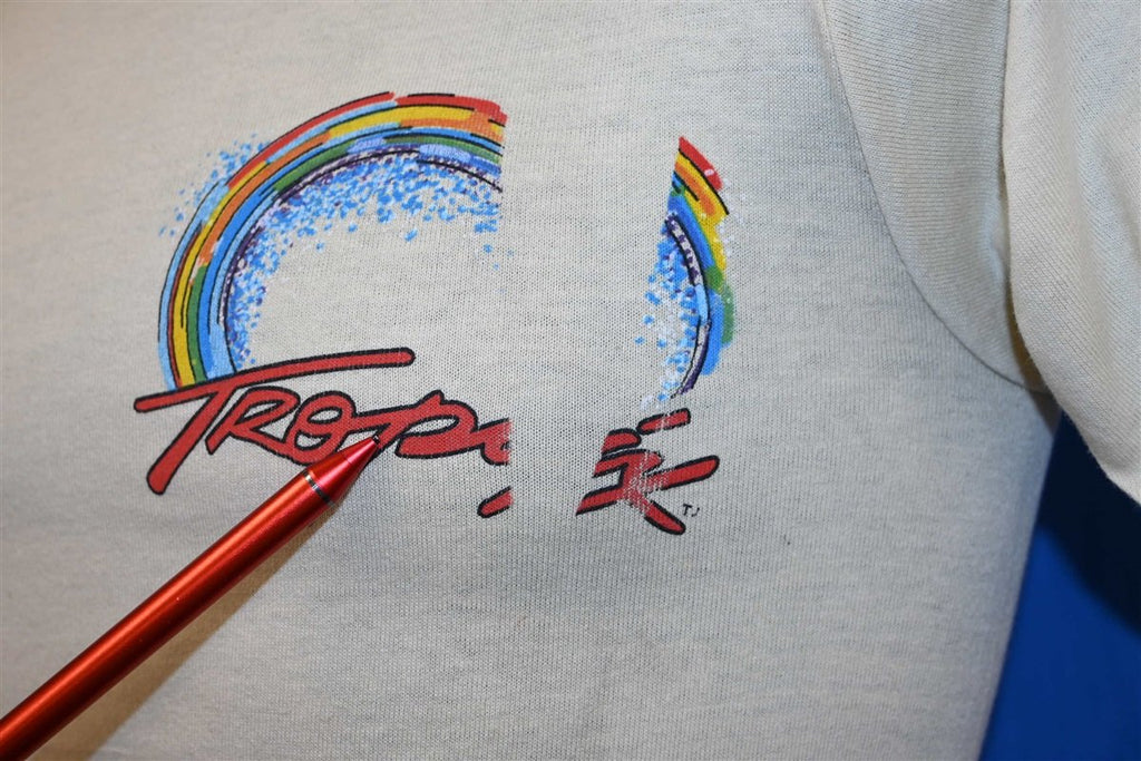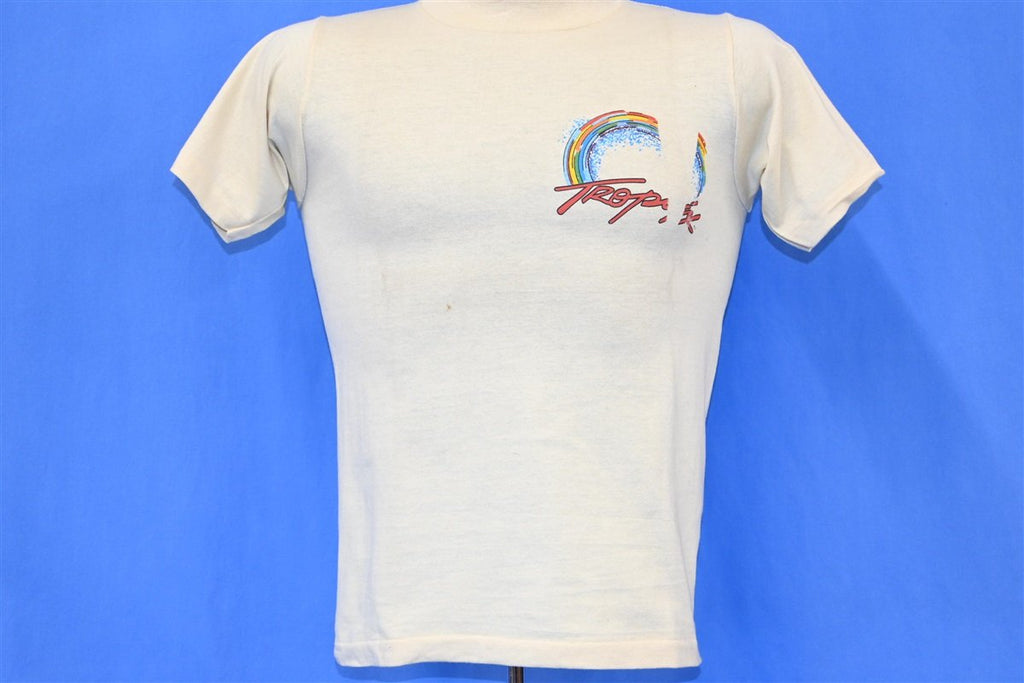 This sweet kid's shirt was made in the 80s and it features a colorful surf graphic from the brand Tropix.