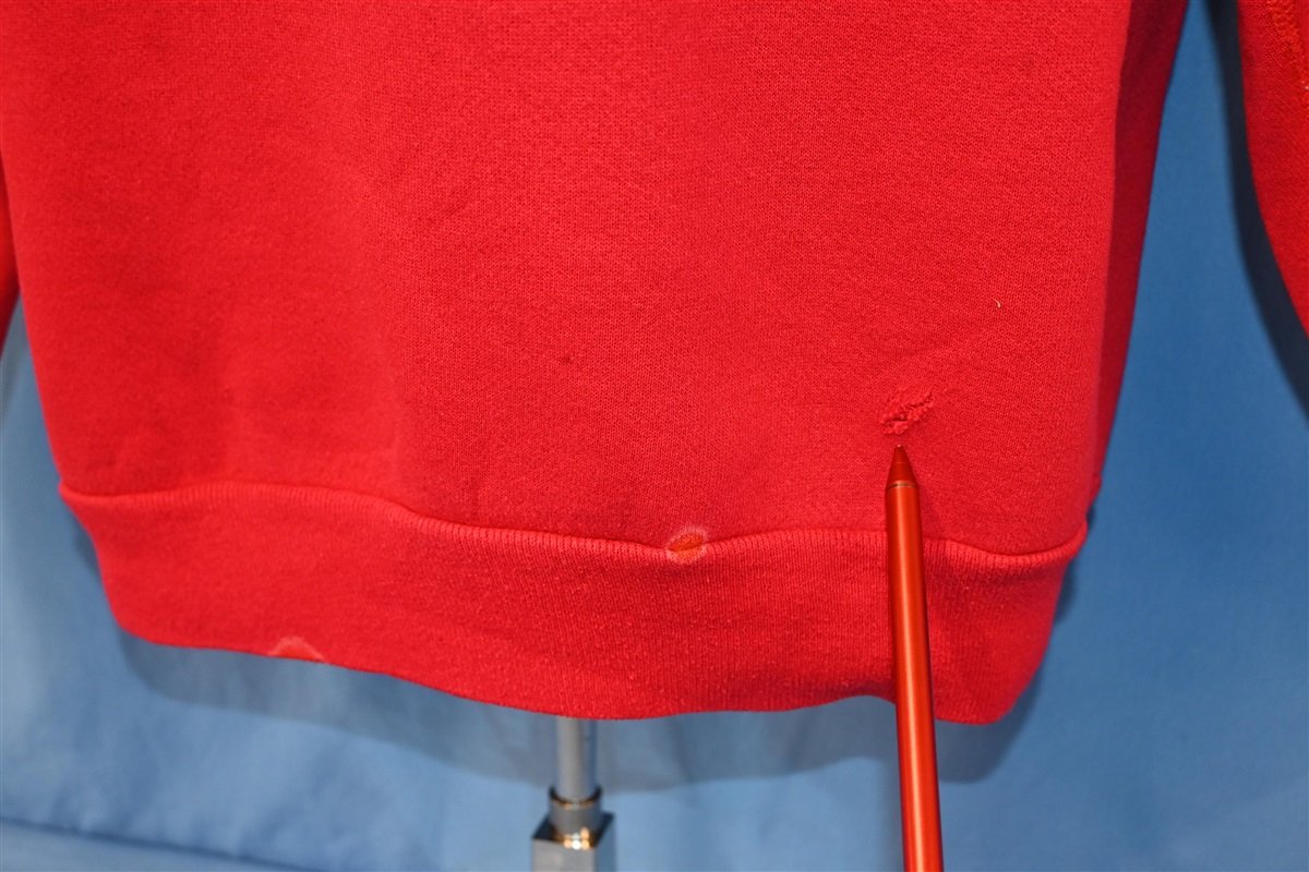 Fits like a modern unisex adult large. This shirt is distressed with multiple stains and holes, see pic.
