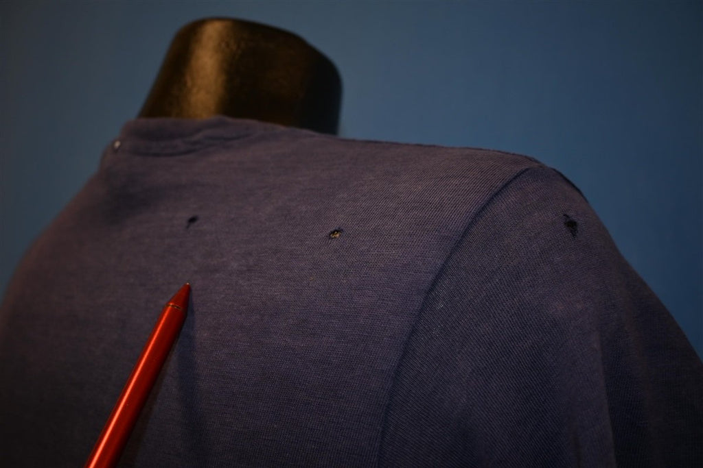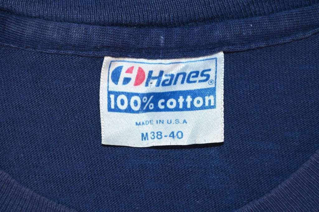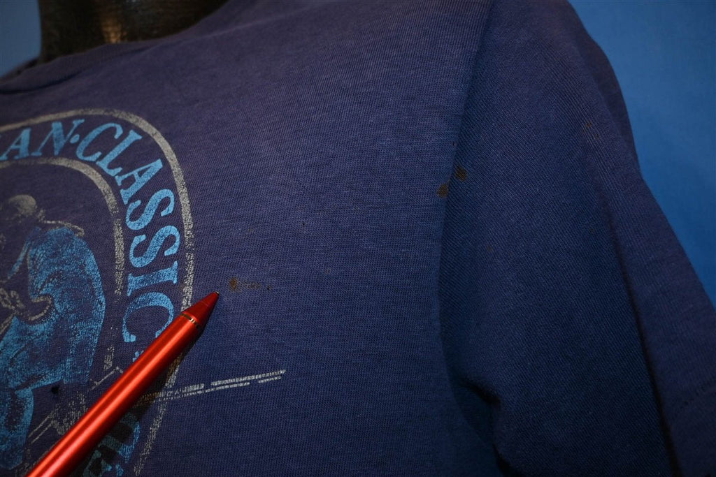 Fits like a modern unisex adult medium, this shirt is soft and distressed with holes and discoloration, see pics
