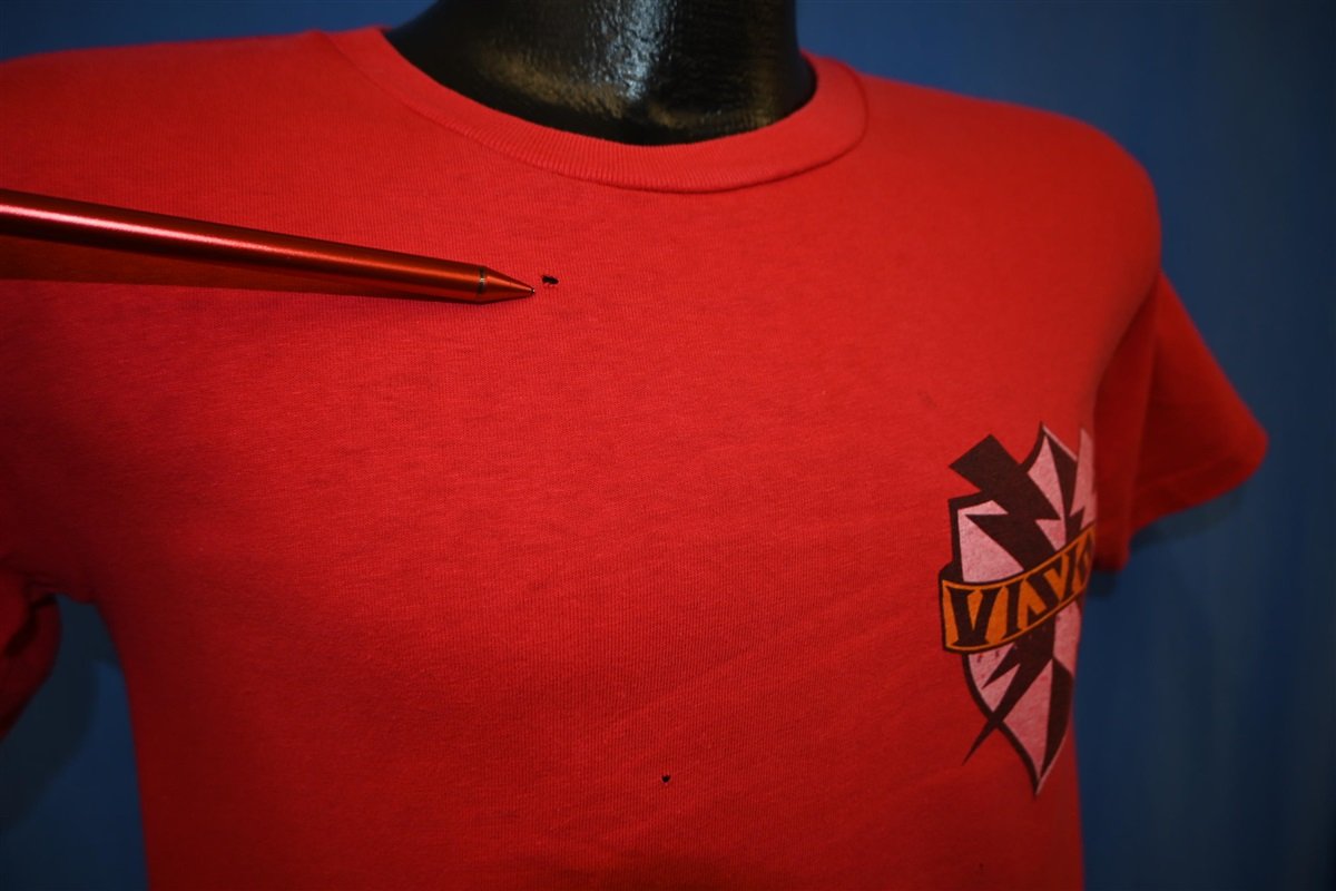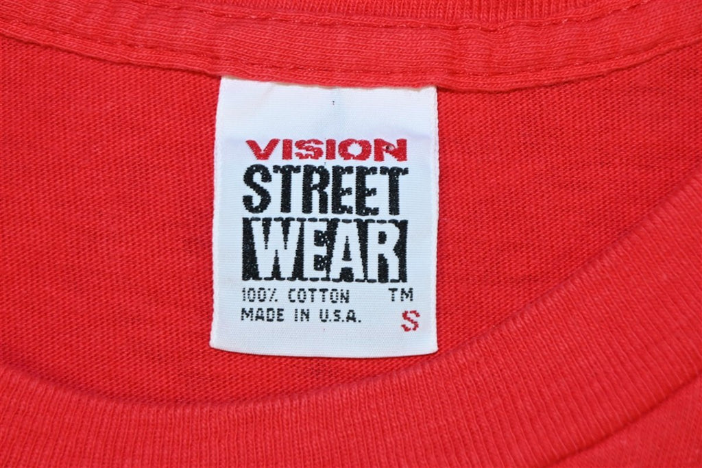 This sweet double-sided tee was made by the skate apparel brand Vision Street Wear. Vision originated in the 70s, as a skateboard company created by Brad Dorfman, and this cool shirt was made in the 80s, around the time the brand started gaining significant attention. It was during this decade that Vision premiered their first ever pro model skateboard, and they collaborated with pro skater, Mark "The Gonz" Gonzales to create several pro board models. It was also during this era that Vision expanded into apparel, as a way to capitalize off the rising popularity of skate culture. Thus the Vision Street Wear brand was born.