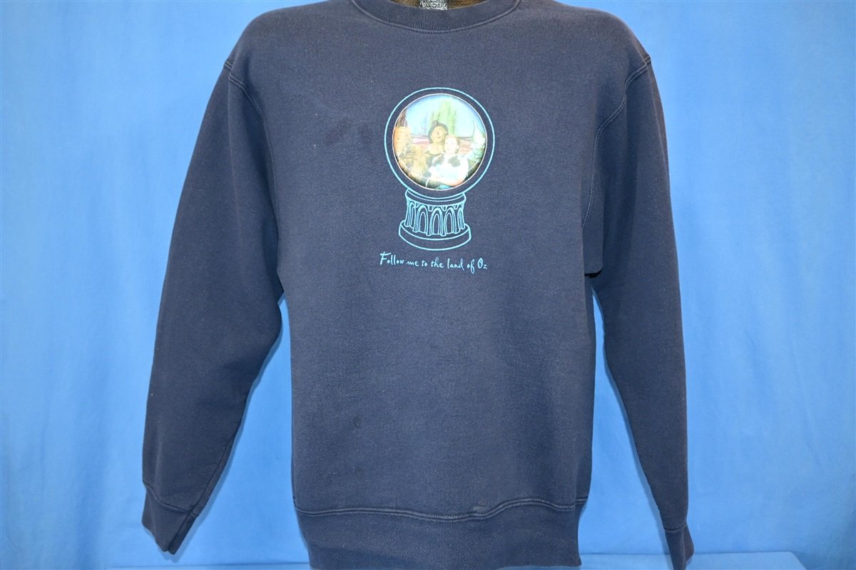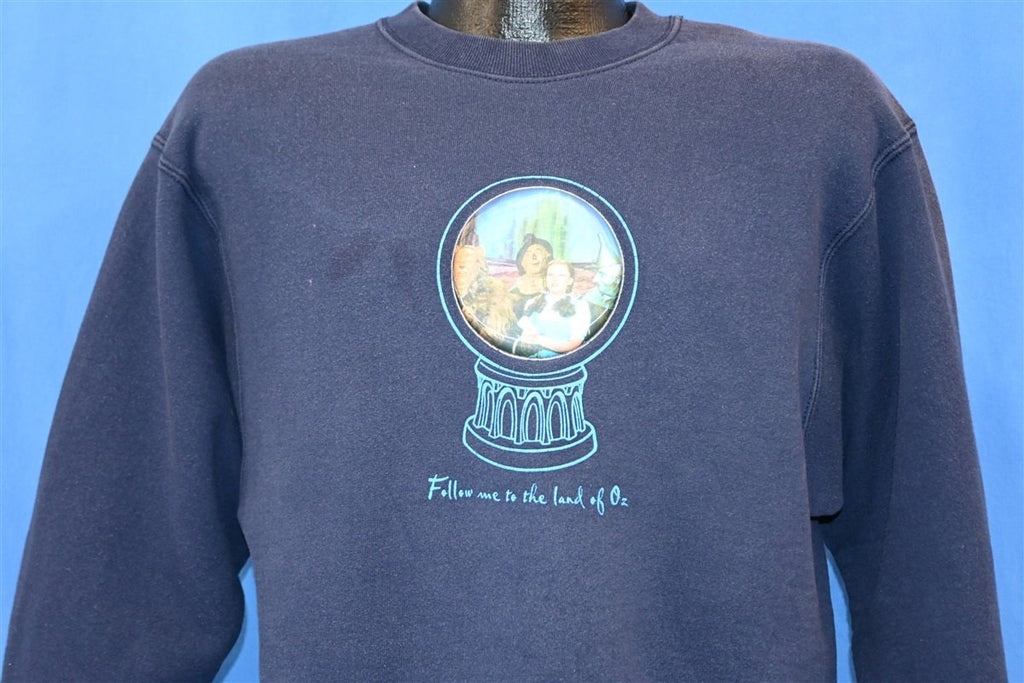 Underneath the crystal ball are the words, "Follow me to the land of Oz". The Wizard of Oz is the 1939 film adaptation of the fantasy novel The Wonderful Wizard of Oz by L. Frank Baum. Generations of children have been awed and bewildered by the world of Oz for many decades. At the end of the 90s, Warner Bros. re-released the film for it's 60th anniversary and this sweatshirt may have been promotion for this anniversary.