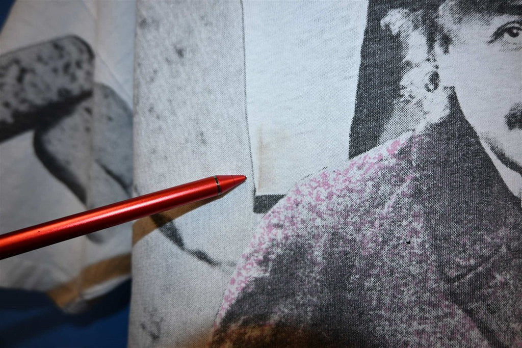 The image on this tee was popularized by a beloved t-shirt manufacturing company called Andazia International. The brand used to offer expertly screenprinted tees with large and unique graphics. Some of their most popular tees involved another engaging celebrity, the graphic artist M.C. Escher, and his optical illusion illustrations.