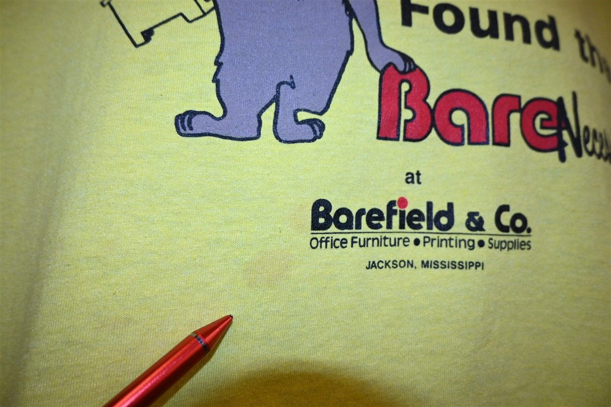 This cool tee was made for Barefield & Co, an office supply and furniture company that was located in Jackson, Mississippi. Barefield & Co changed their name to Workplace Solutions.