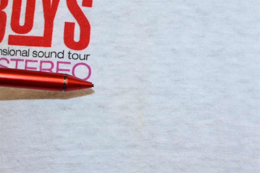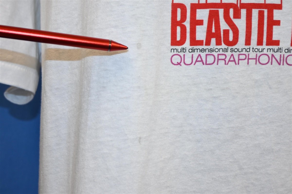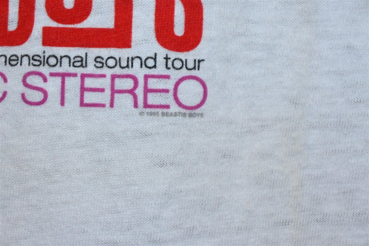 This sweet vintage tee is merchandise from the Beastie Boys' Quadraphonic Stereo Tour from 1995. The Beastie Boys were at the height of their popularity around this time, having released Ill Communication and headlined Lollapalooza the year before. This tour was a big commercial success with their New York and Chicago shows selling out in under 30 minutes.
