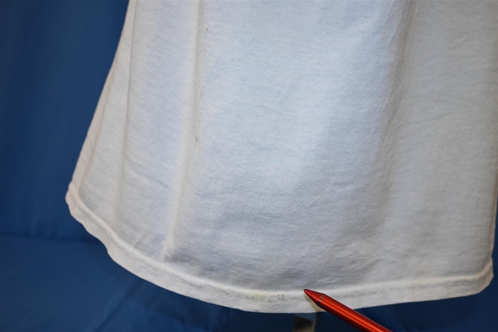 Fits like a modern unisex adult oversized Extra Large. There is light discoloration on the right side when wearing, see pics.