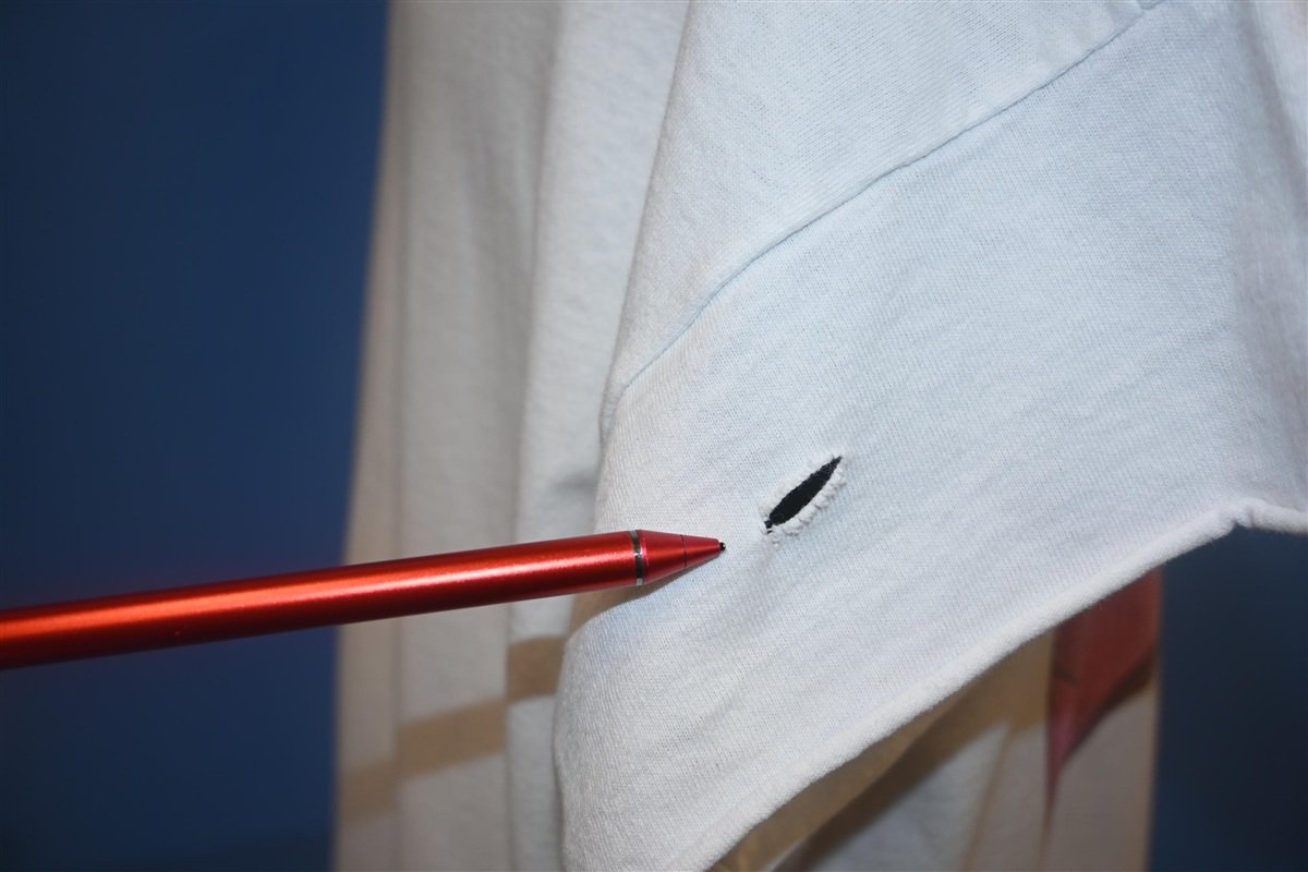 Fits like a modern unisex adult Extra Large. The sleeves have been cut and there's a hole in the right sleeve when wearing, see pics.