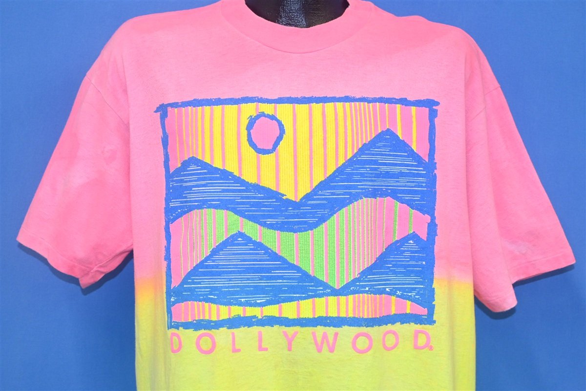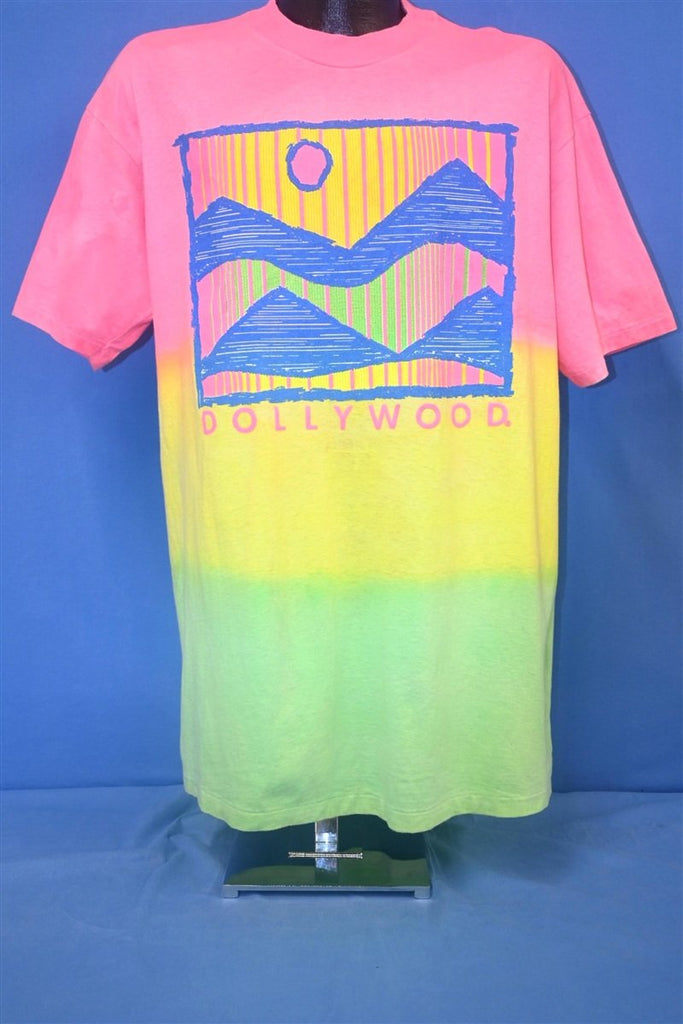 90s Dollywood Amusement Park Neon Dip Dye t-shirt Large