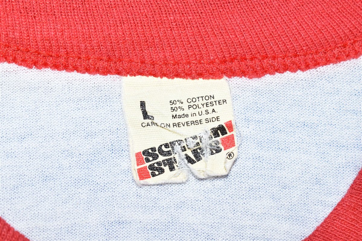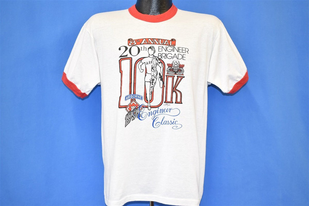 This vintage tee was a gift for the runners of the Engineer Classic 10K in 1991. It's super buttery soft on your skin and the fabric is thin and airy, it's like wearing nothing. Features lovely red sleeve bands and collar which contrasts nicely with this white tee.