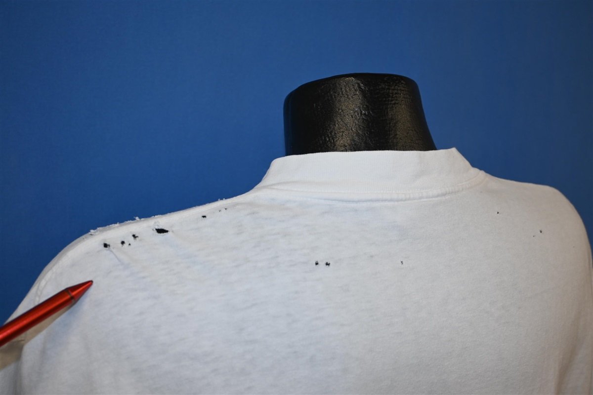 Fits like a modern unisex adult Extra Large. There are holes and wear along both shoulders, see pics.