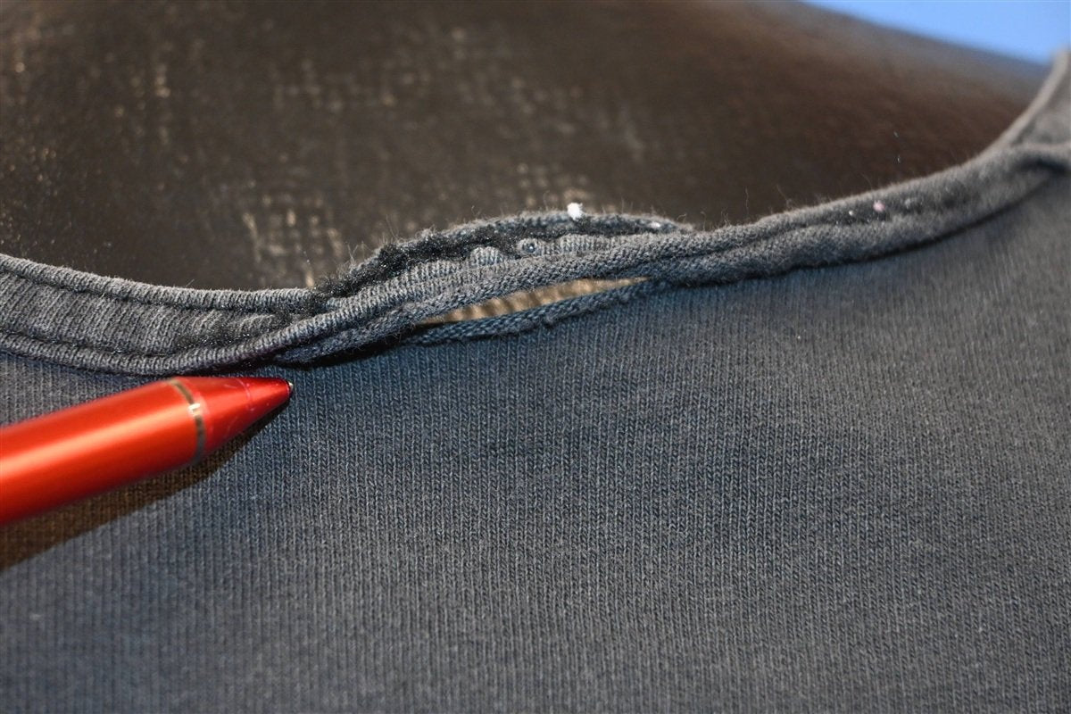 Fits like a modern unisex adult Extra Large. There's a hole along the back of the collar, see pics.