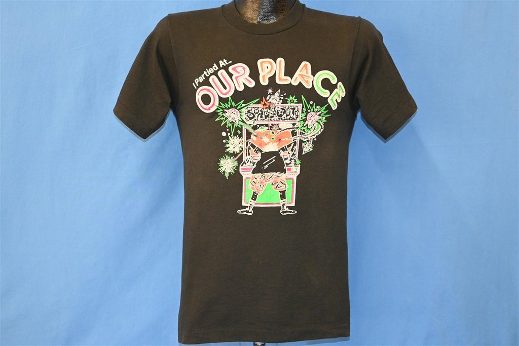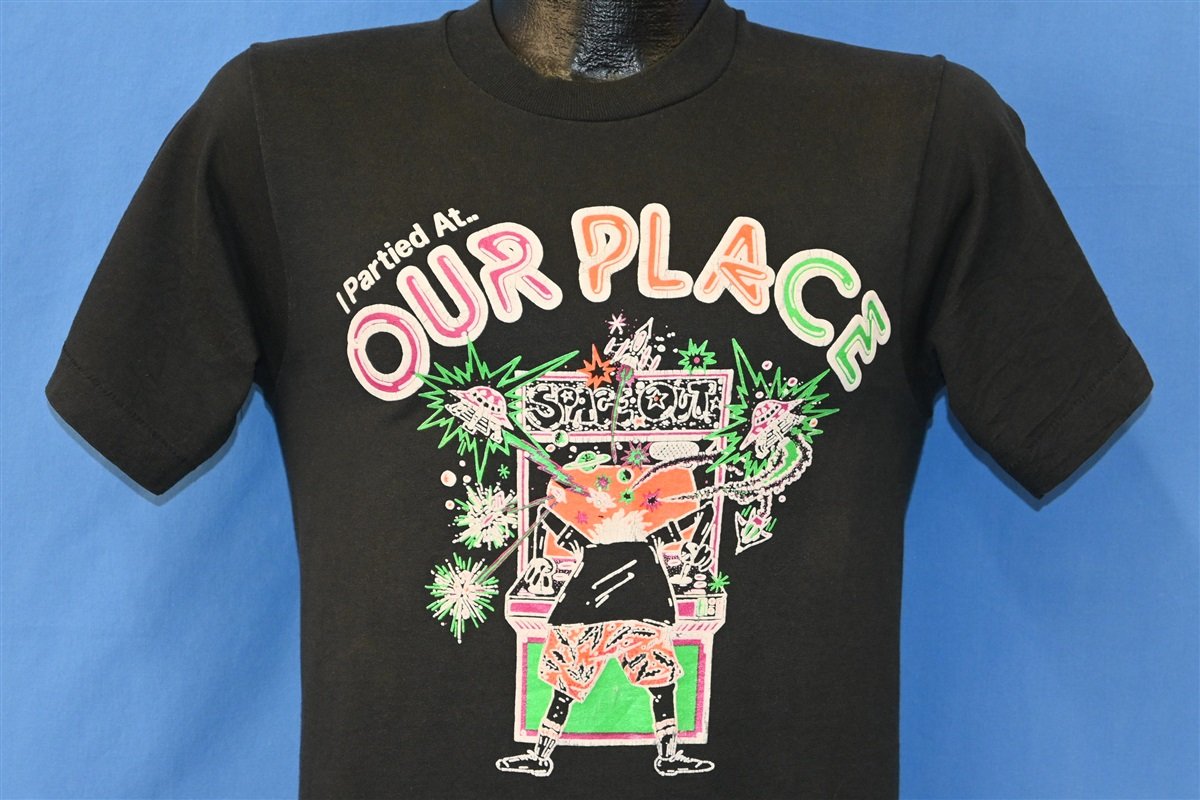 This sweet shirt has a colorful neon graphic that reads, "I partied at Our Place". Our Place used to be a beloved video arcade located in New York during the 80s and 90s. Long Island locals might remember Our Place in Baldwin, where kids could play the hottest video games of the era.