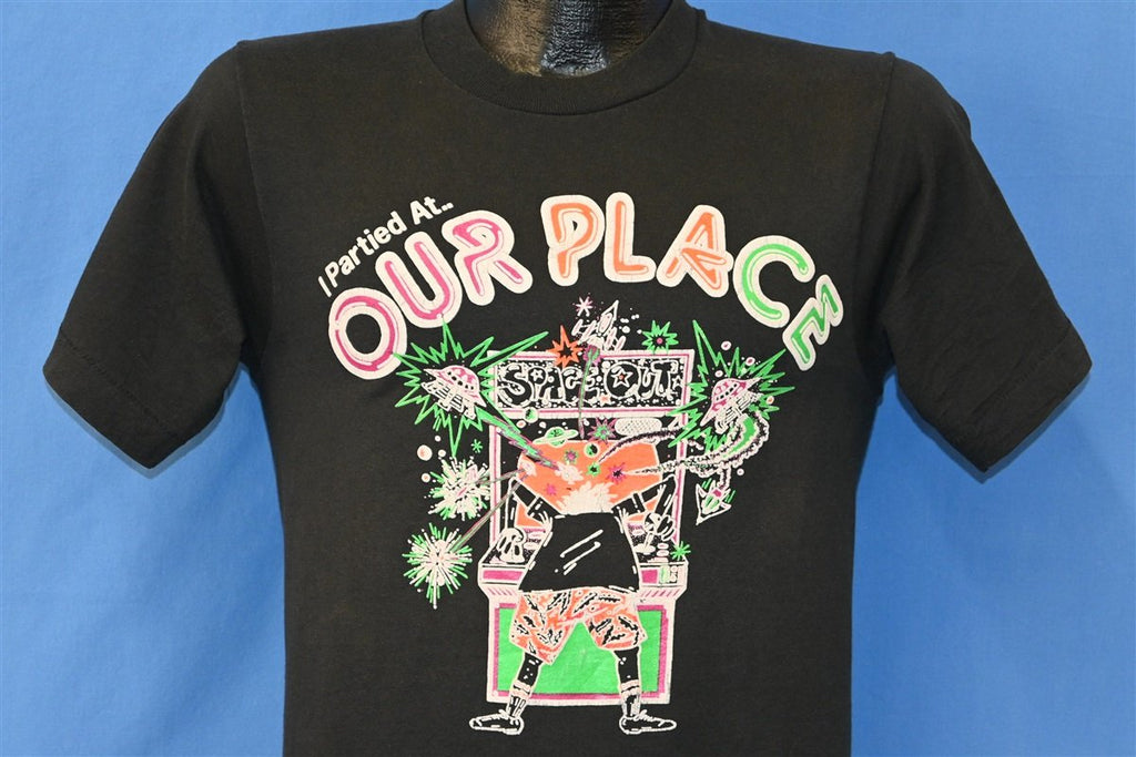90s I Partied at Our Place Video Arcade Neon t-shirt Small