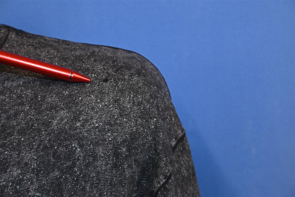 Fits like a modern unisex adult large. There are some holes throughout, see pics.