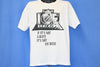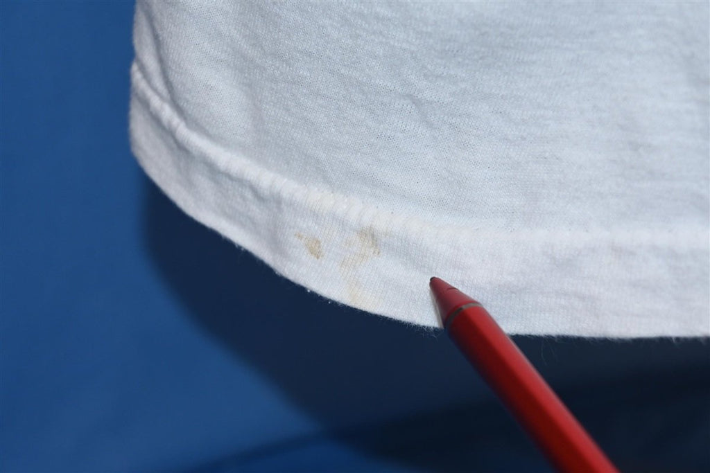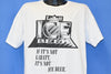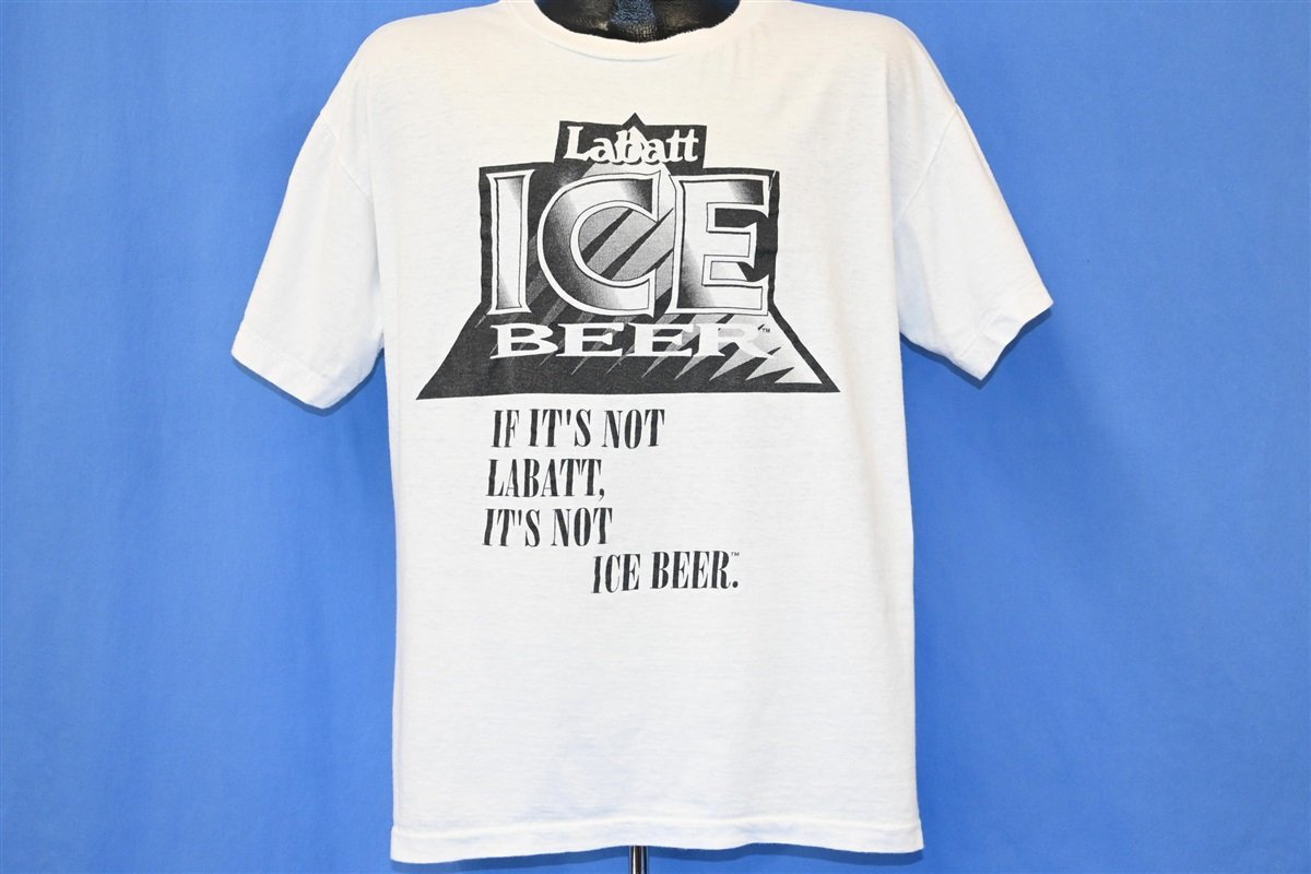 This cool tee was made to promote Labatt Ice Beer. This tee proudly states "If it's not Labatt, it's not ice beer." While ice beer has contentious origins, the Canadian brewing company of Labatt claims to be one of the drink's originators. The process of brewing ice beer involves freezing the beer and then removing some of the ice. This new brewing process created intrigue and became notably popular in the 90s and early 2000s.