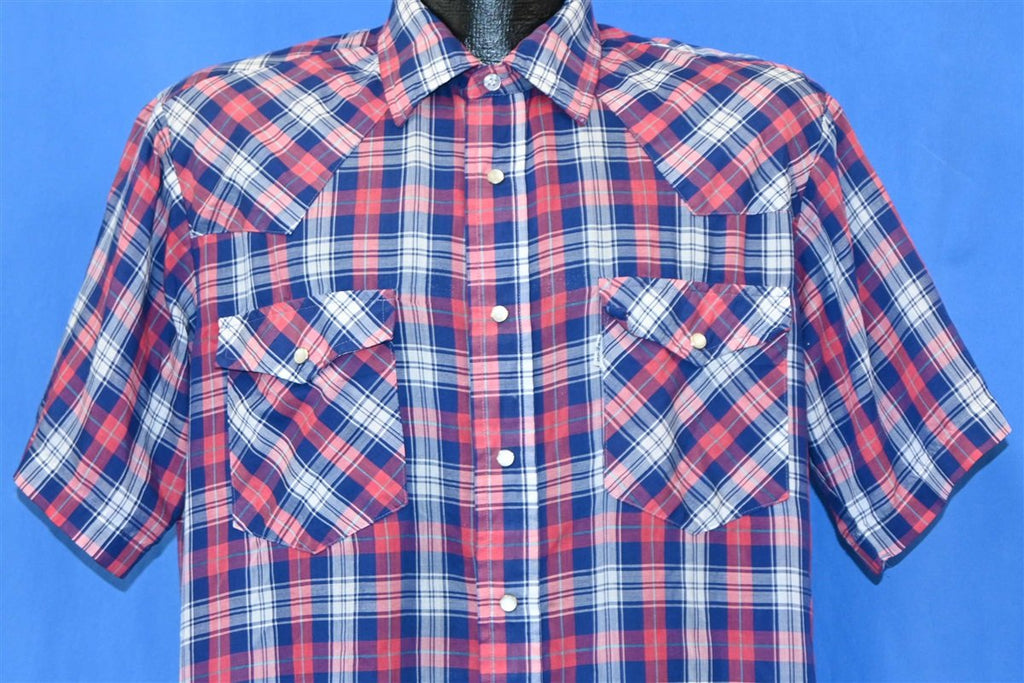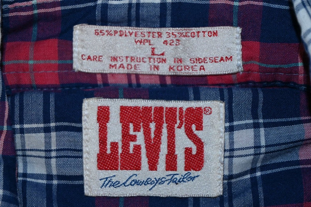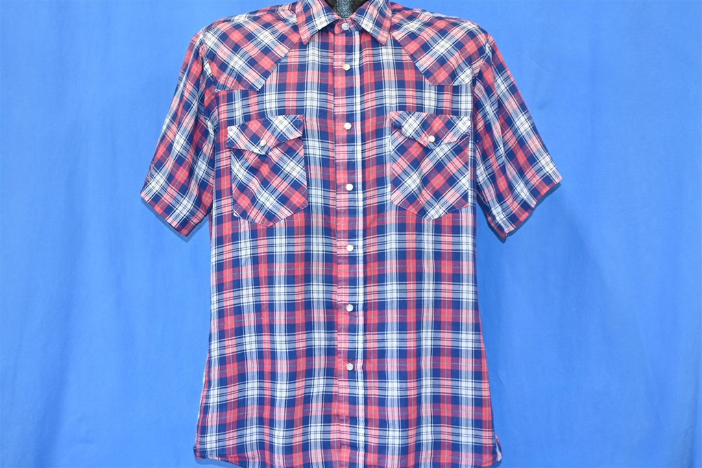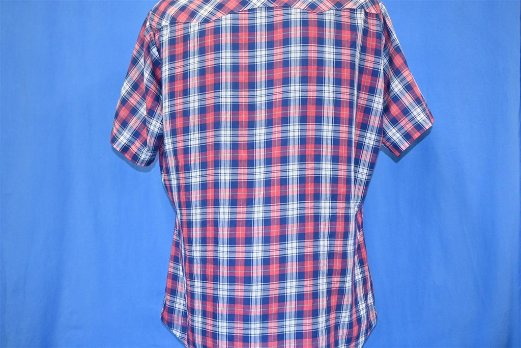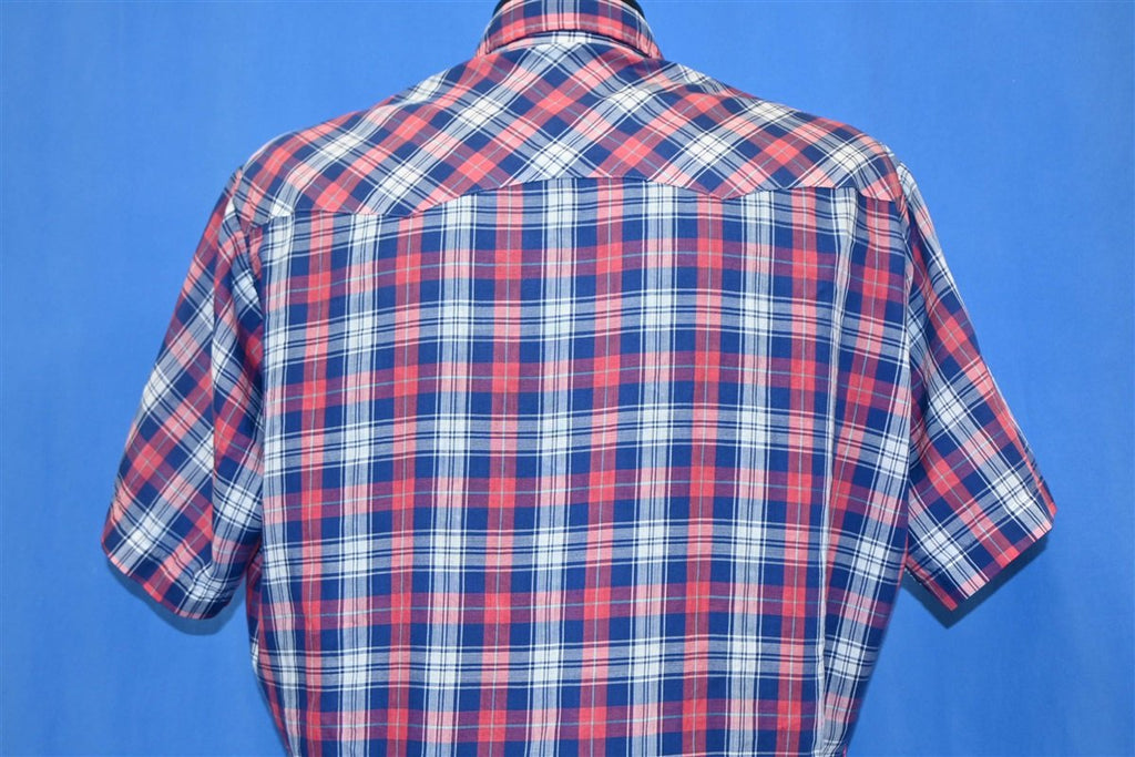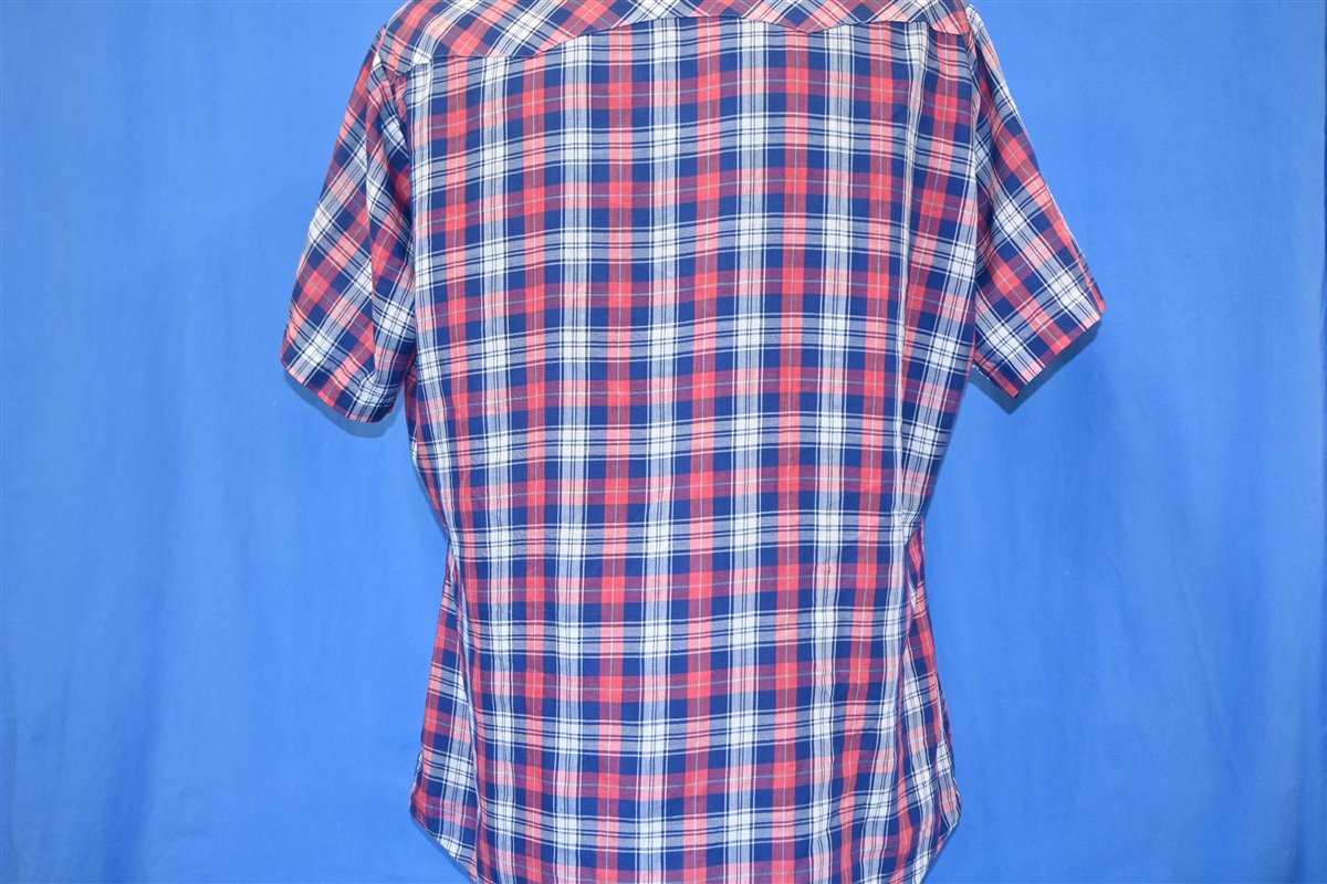 90s Levi's Red White Blue Plaid Pearl Snap Cowboy Shirt Large