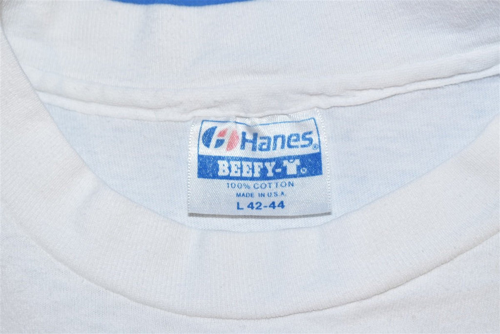 This shirt features an awesome neon graphic for Penn Racquetballs on the back. Penn is recognized as the number one selling tennis and racquetball manufacturer in the United States. The graphic also reads "The worlds favorite duo" and includes the signatures of Fran Davis and Stu Hastings who both served as the coaches for the World Championship Racquetball Team in 1990.
