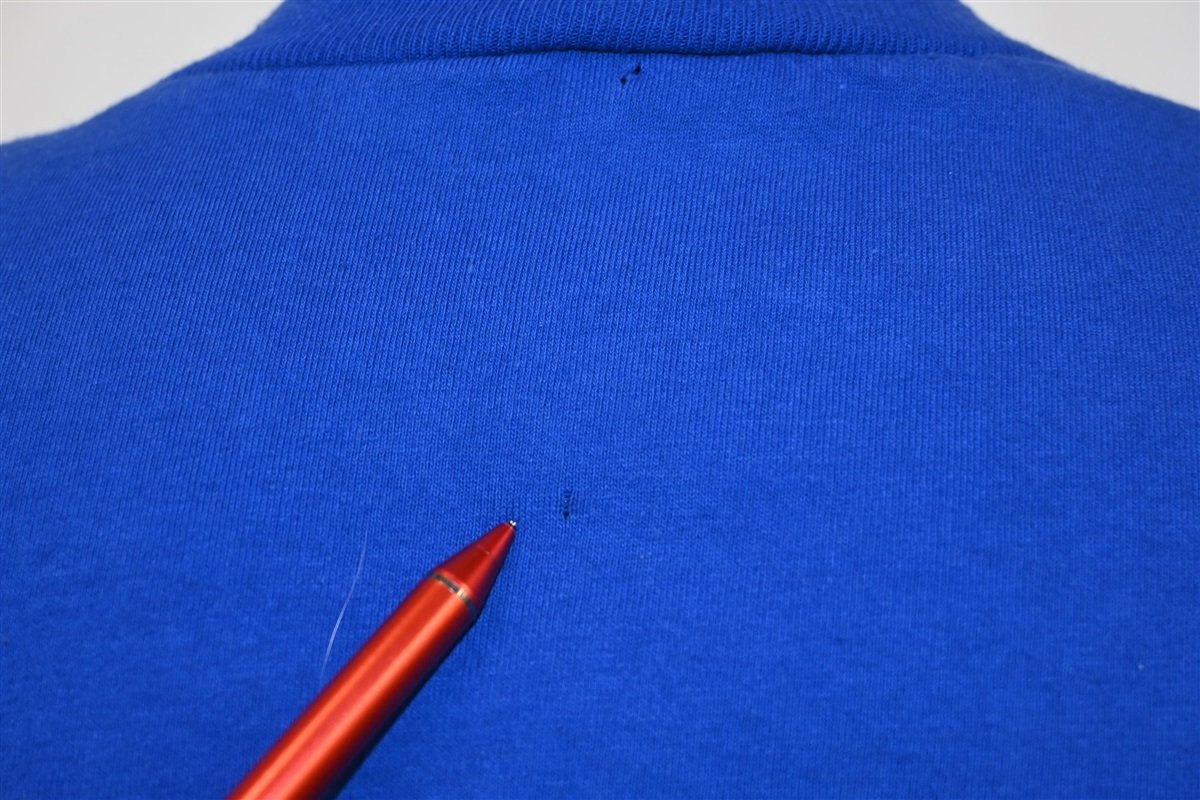 Fits like a modern unisex adult over-sized Extra Large. There is some discoloration throughout and small holes on the back, see pics.