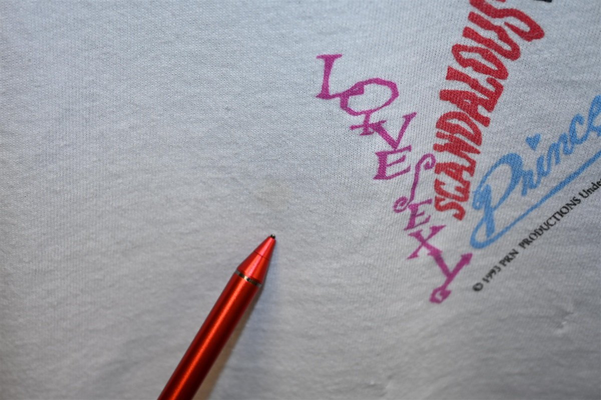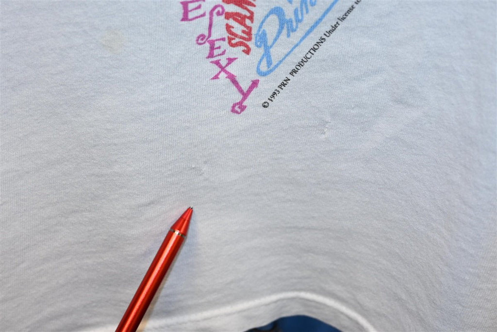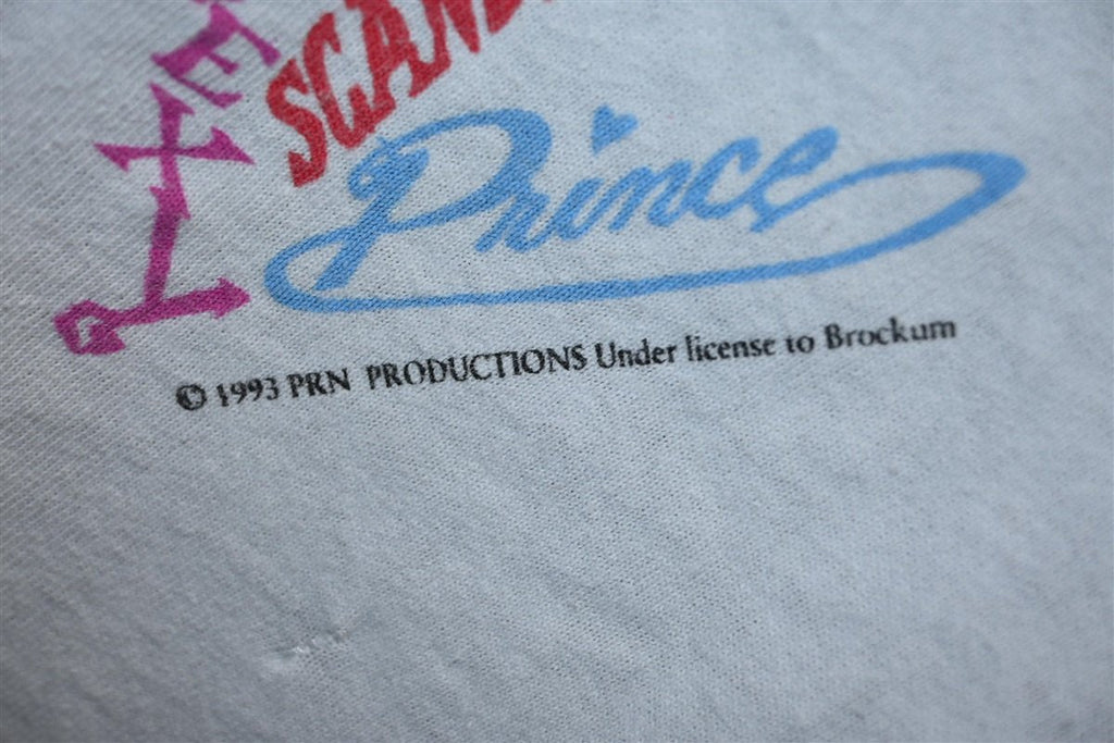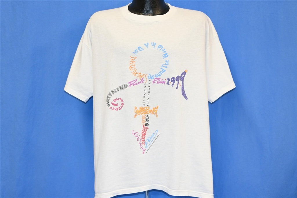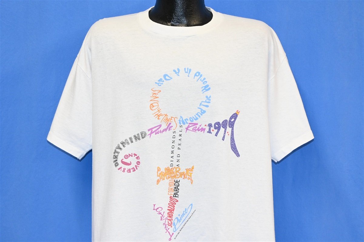 This amazing t-shirt is a keepsake from Prince and the Power Generation's Act I tour in 1993. The tee features a colorful graphic of the symbol, known to fans as the Love Symbol, which was the unpronounceable name of his 14th studio album. Prince actually changed his stage name to this symbol in '93 due to a dispute with his label and he was referred to as The Artist Formerly Known as Prince, TAFKAP, or just The Artist until 2000.
