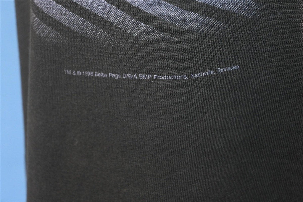 As the 1950s came to a close, Page disappeared from the public eye, although her legacy endured for many decades. Interest in the former model was boosted particularly thanks to the rockabilly revival of the 1980s, and she gained a cult following that placed her as a pop culture paragon of fetish and vintage glamor. This shirt was made in the 90s, amid her resurgence in popularity, and it stands as a testament to her lasting influence.