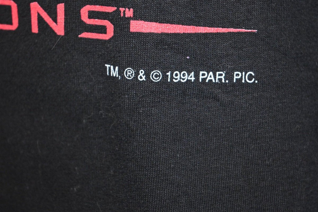 This awesome tee is for the 1994 science fiction film, Star Trek Generations, based off the beloved Star Trek franchise from Gene Roddenberry. This was the seventh film in the Star Trek film series, and it united the casts of both Star Trek: The Original Series and its sequel, Star Trek: The Next Generation. Alongside Star Trek veterans like William Shatner, James Doohan, Walter Koenig, Patrick Stewart, Jonathan Frakes, Brent Spiner, LeVar Burton, and Michael Dorn, the cast also featured Malcolm McDowell as the main antagonist.
