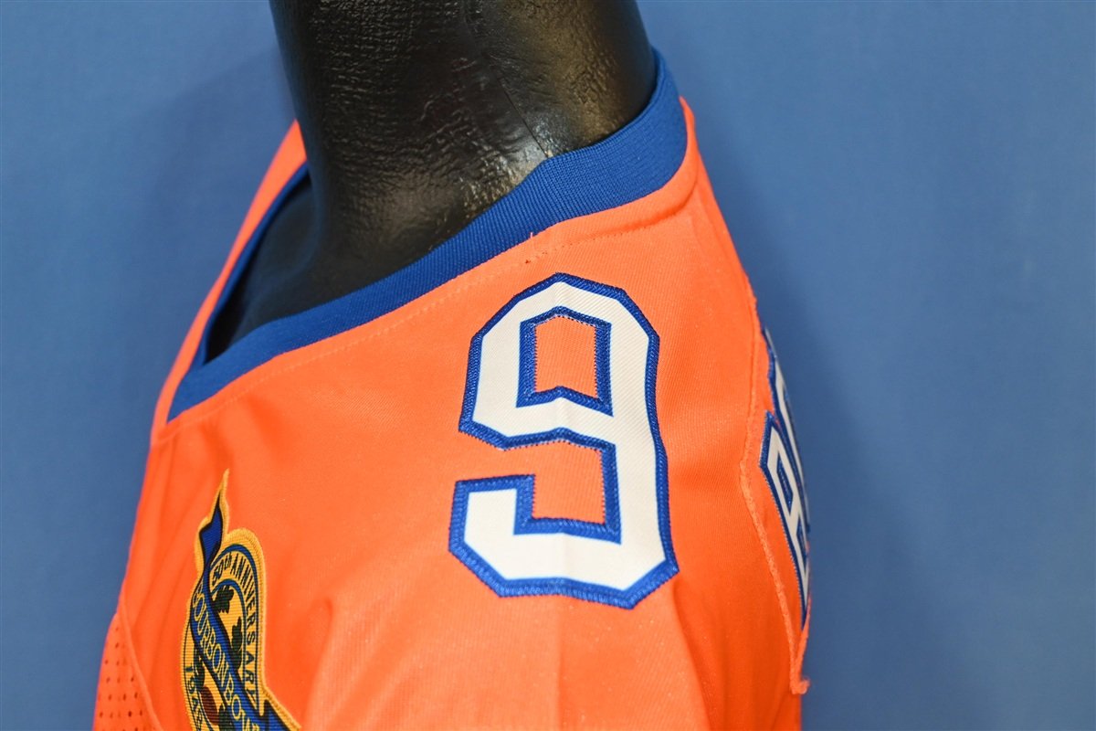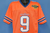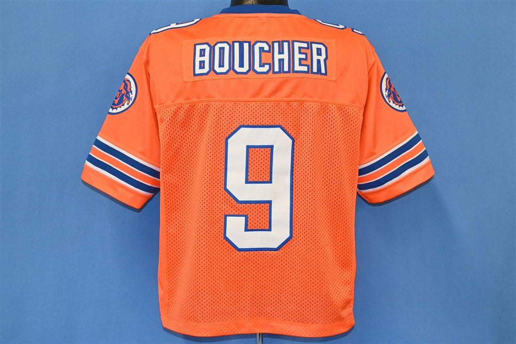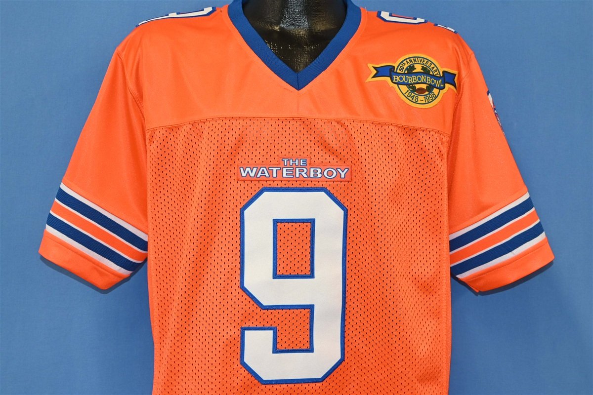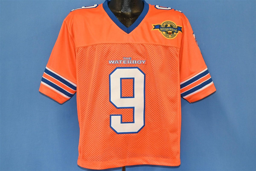 This sweet vintage jersey reps the fictional football star, Bobby Boucher and it has the type of cropped fit that was popular back in the 90s. Bobby Boucher was the central character of Adam Sandler's 1998 comedy film, The Waterboy, in which a hapless waterboy becomes the star linebacker of a Louisiana college football team. The jersey is made to look like it belongs to the South-Central Louisiana State University Mud Dogs, and it includes a patch commemorating the Bourbon Bowl that the team wins during the movie's climax.