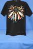 This tee features a dreamcatcher as well as a couple of Kokopelli figures. Kokopelli has been revered in the region as far back as 850 AD. Kokopelli figures are frequently seen in the petroglyphs and pictrographs in the Southwest, and has represented many different things.